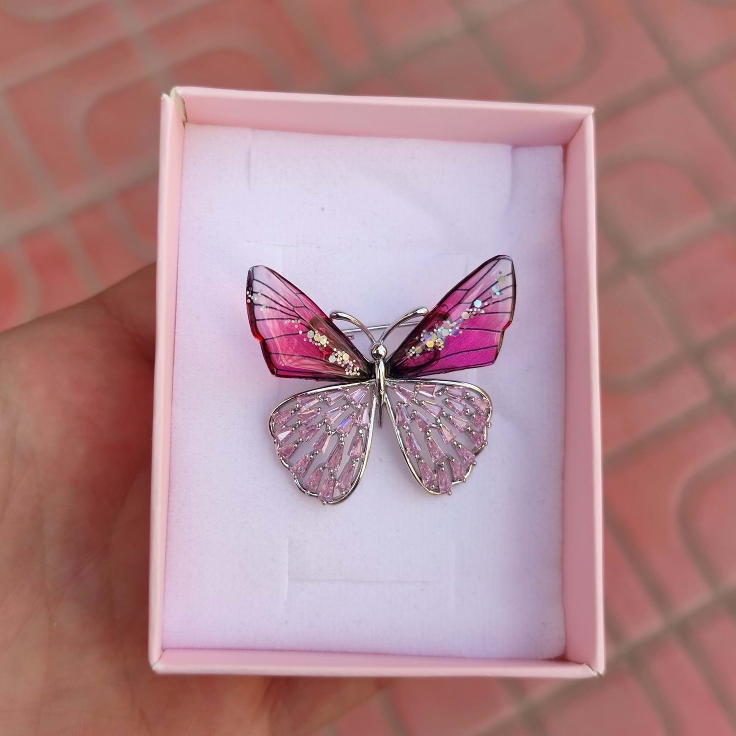 PEMBE TAŞLI KELEBEK BROŞ 3,5 CM