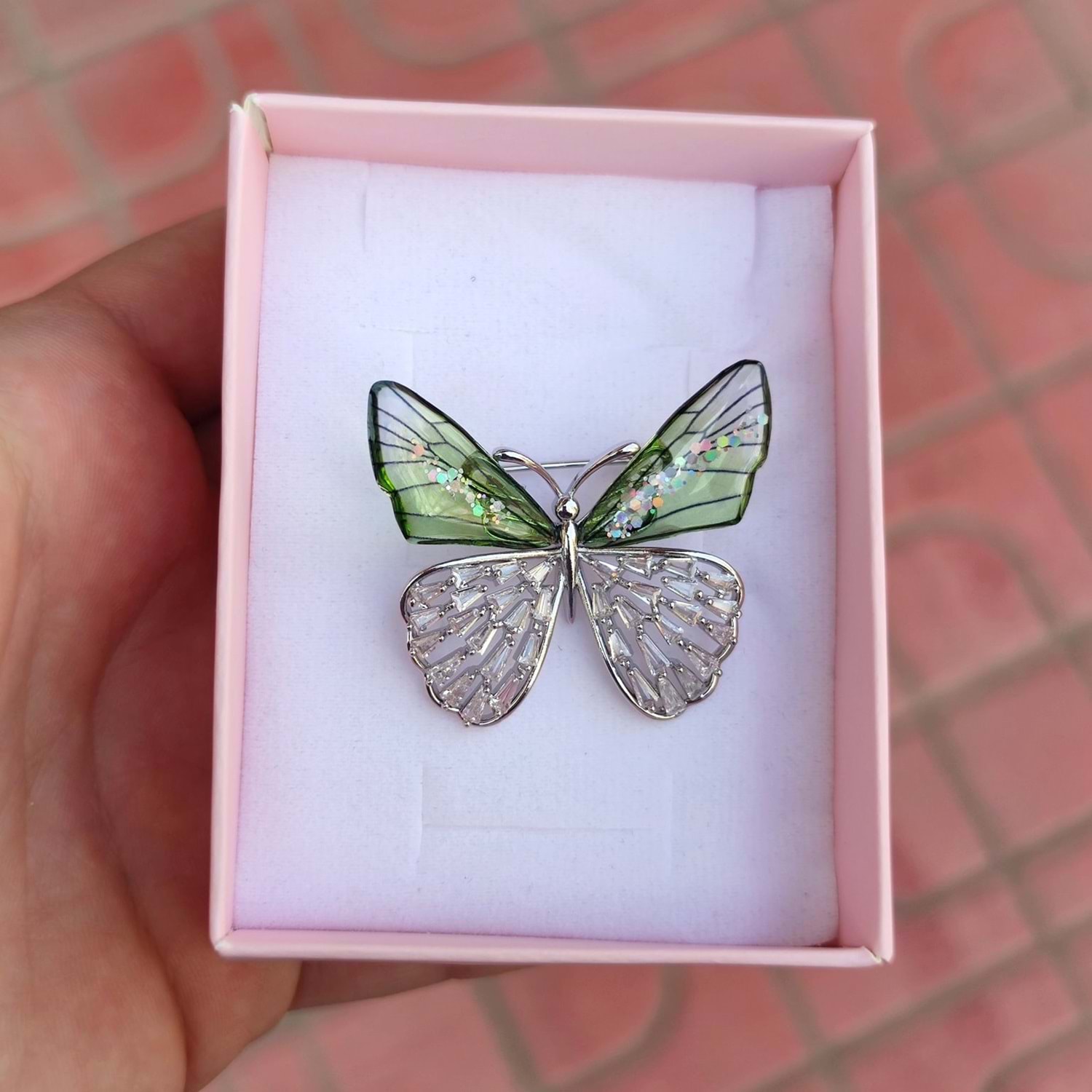 TAŞLI YEŞİL KELEBEK BROŞ 3,5 CM
