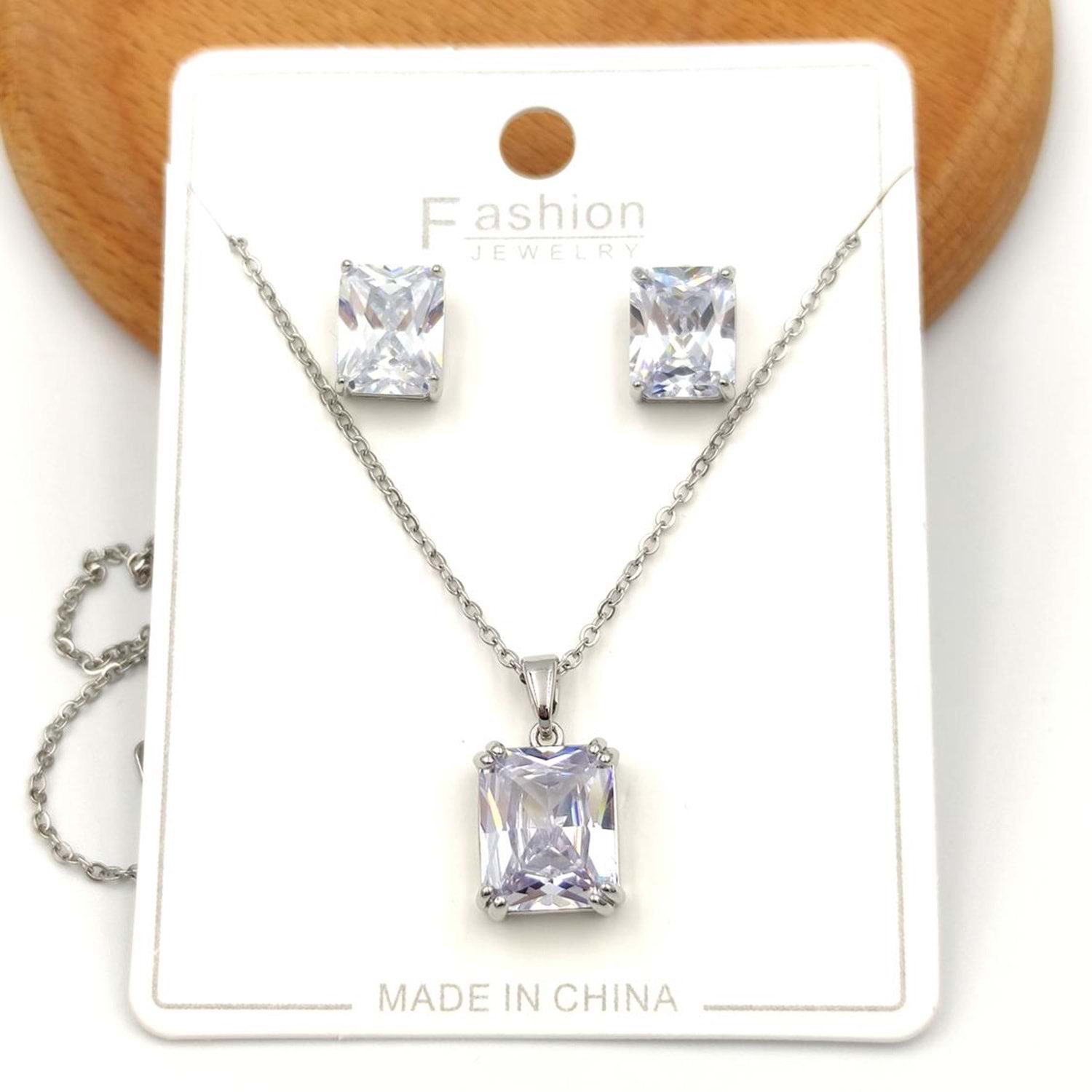 MADENİ PİRİNÇ BAGET BOYUTU : KÜPE 1,1 CM - KOLYE 1,3 CM