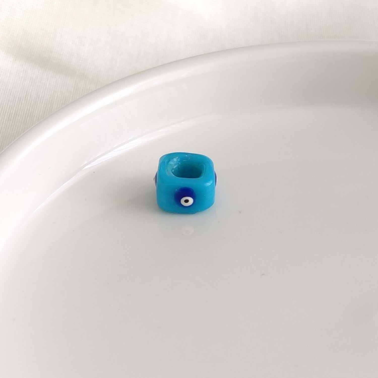 El Yapımı 4 Köşesi Orijinal Mine Gözlü Kare Cam Boncuk,