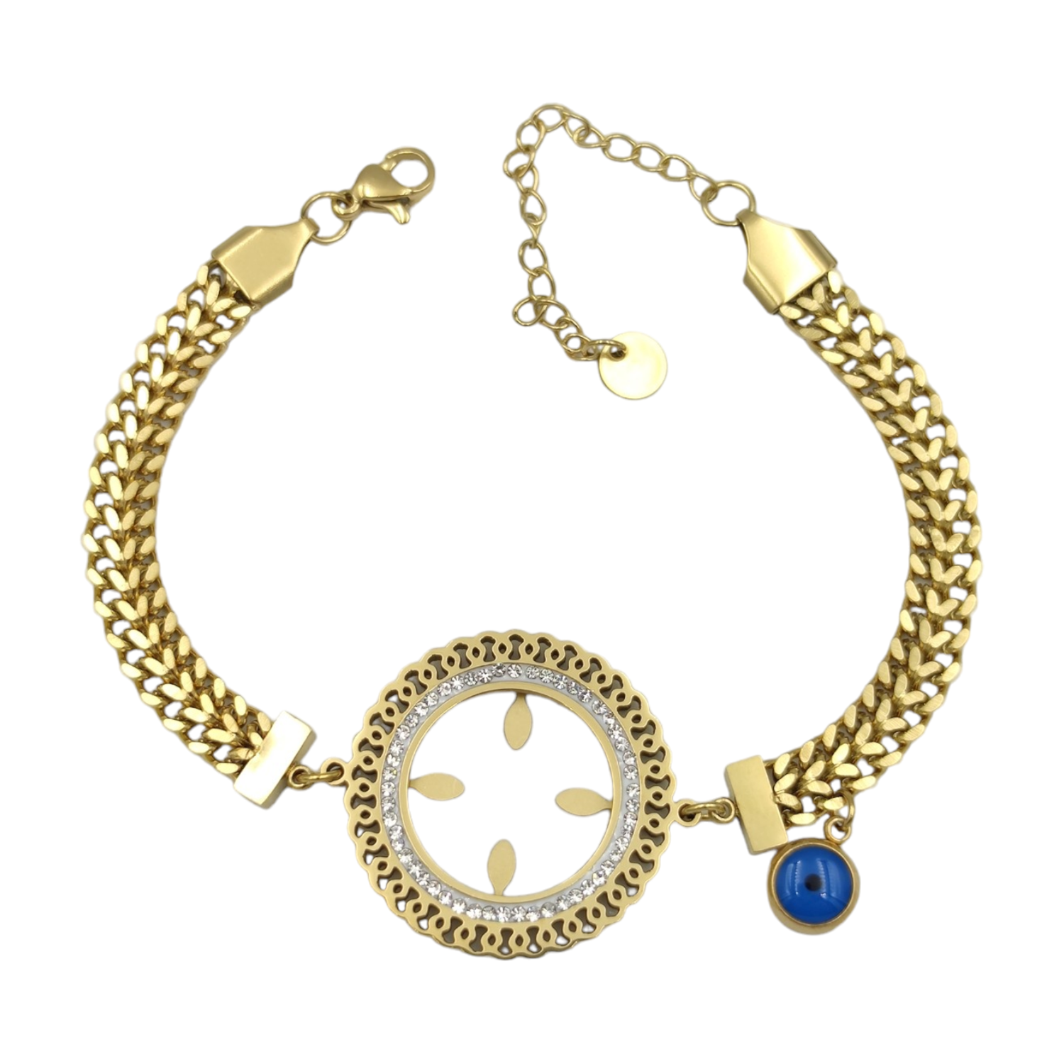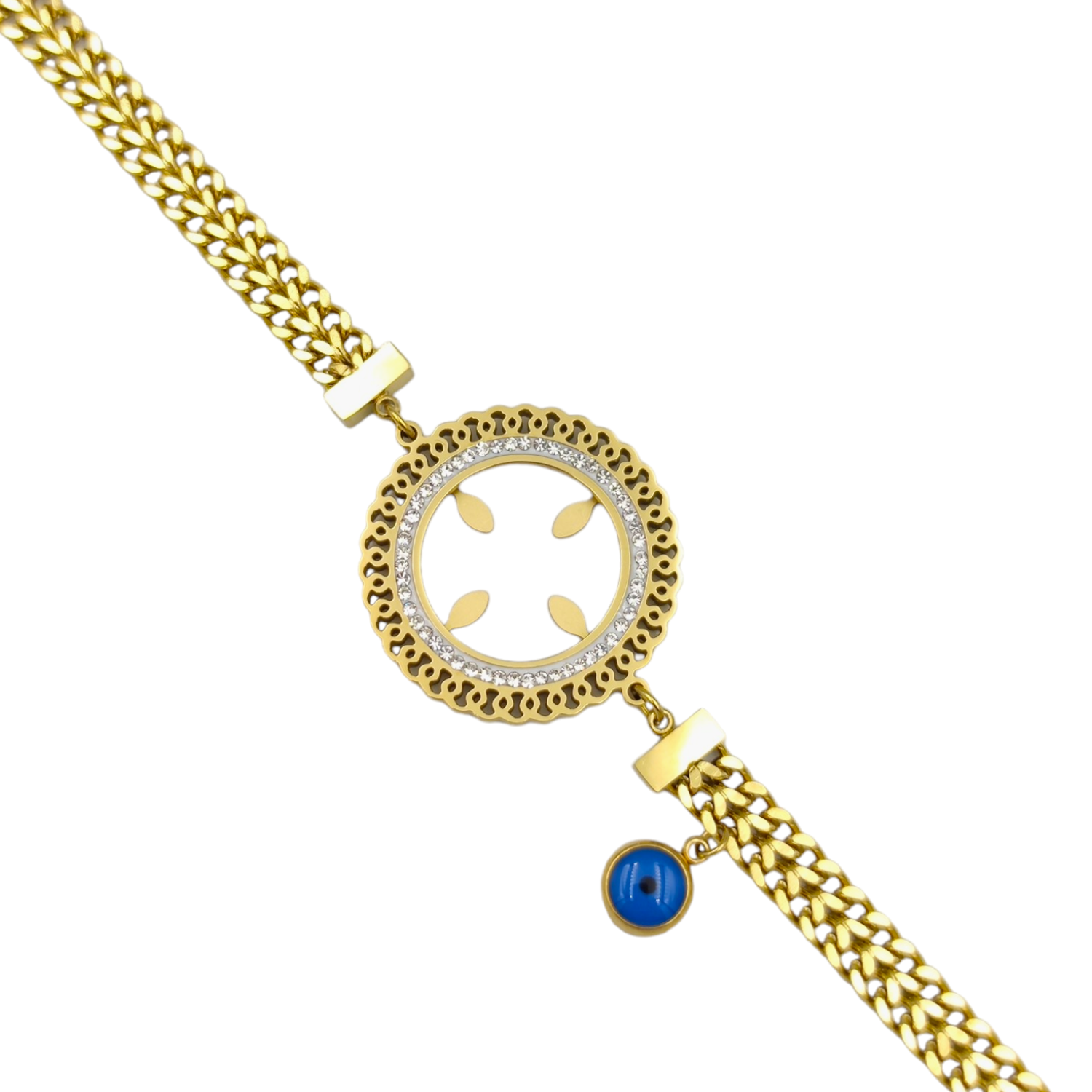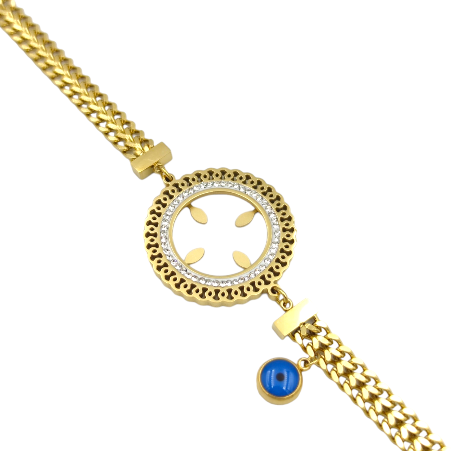ÇELİK ÇEYREK ALTIN KONULABİLEN ÇİFT ZİNCİRLİ BİLEKLİK