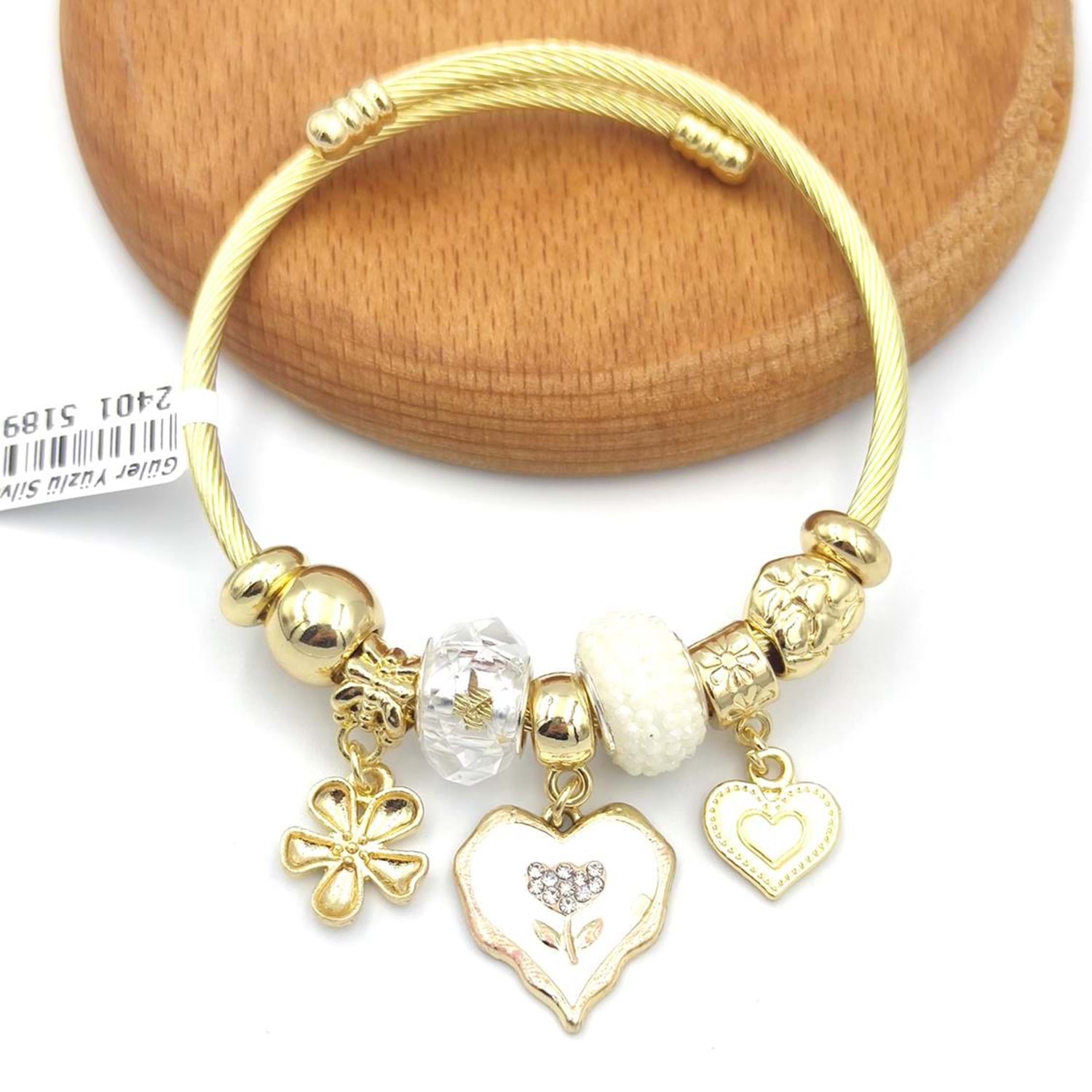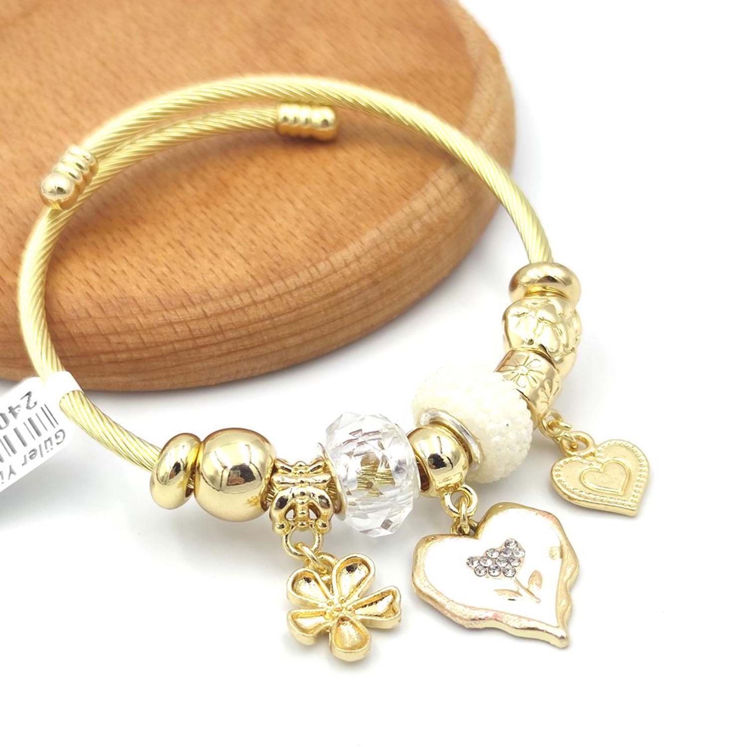 ÇELİK KALP BEYAZ TOP SALLANTILI BİLEKLİK