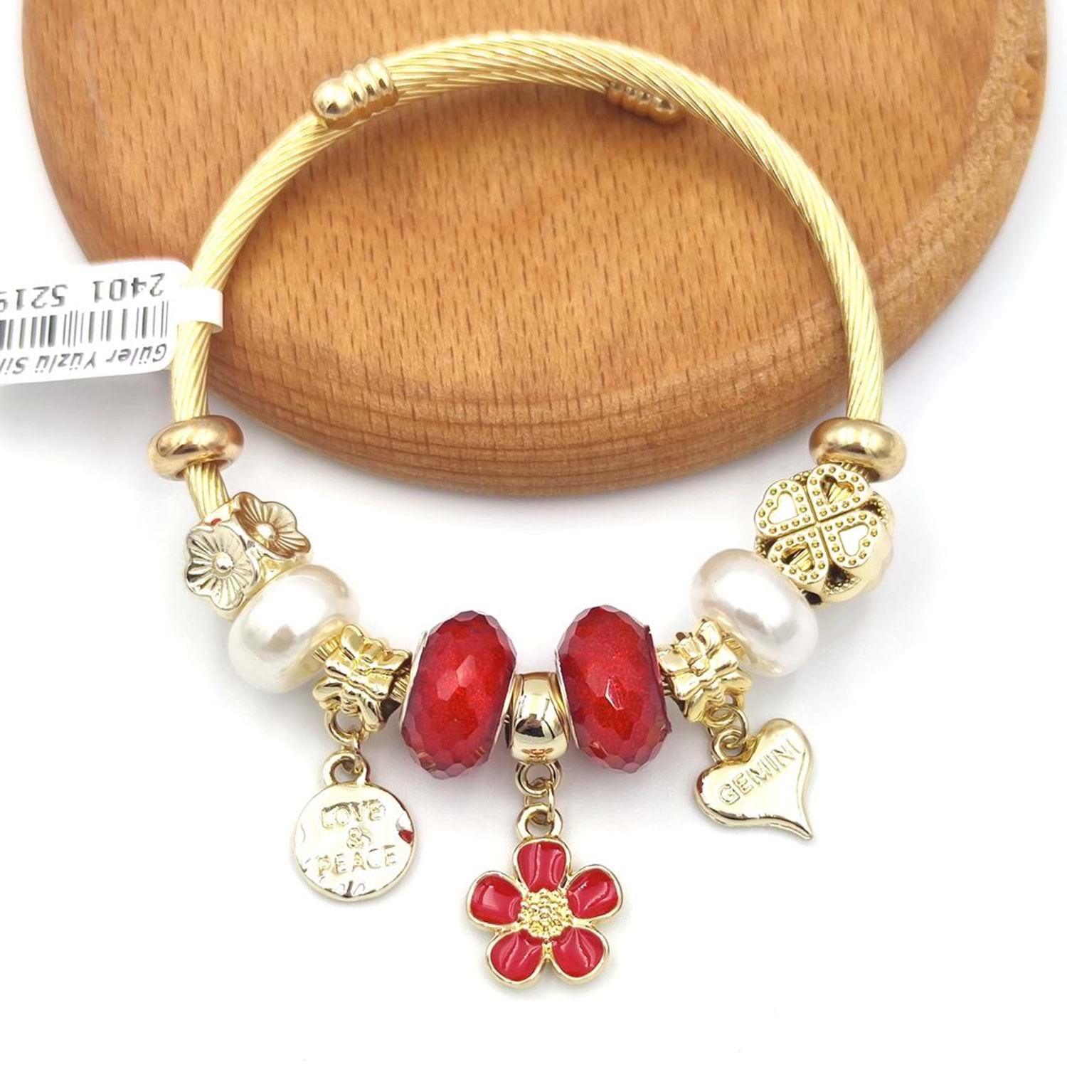 ÇELİK KIRMIZI PAPATYA TOP SALLANTILI BİLEKLİK