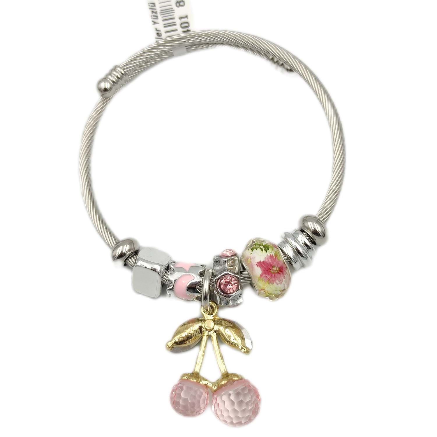 ÇELİK PEMBE KİRAZ TOP SALLANTILI BİLEKLİK