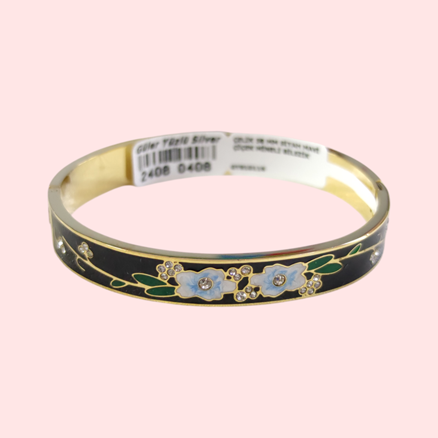 ÇELİK 58 MM SİYAH MAVİ ÇİÇEK MİNELİ BİLEZİK