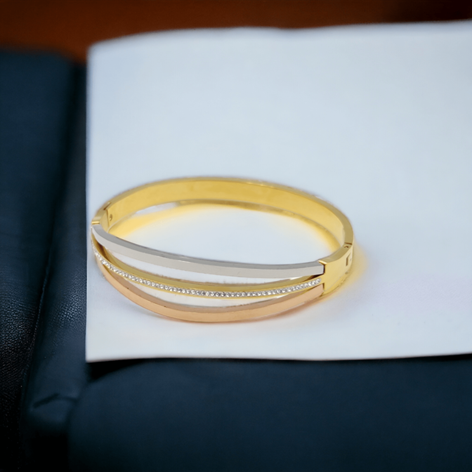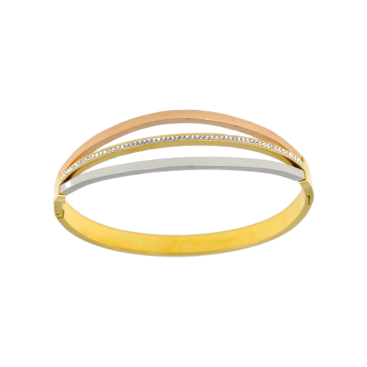 ÇELİK 6 CM ÜÇ RENK TAŞ DETAY BİLEZİK