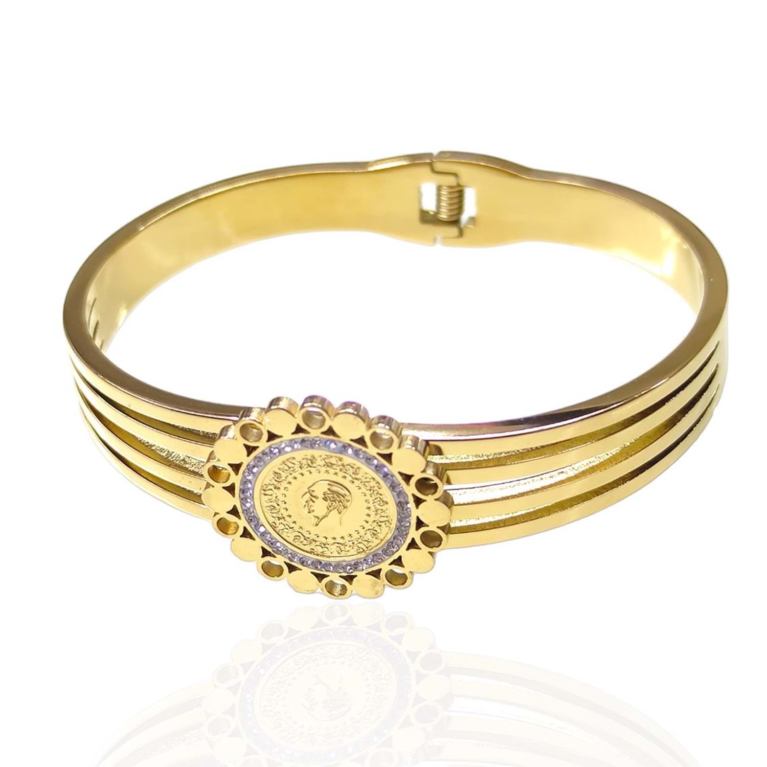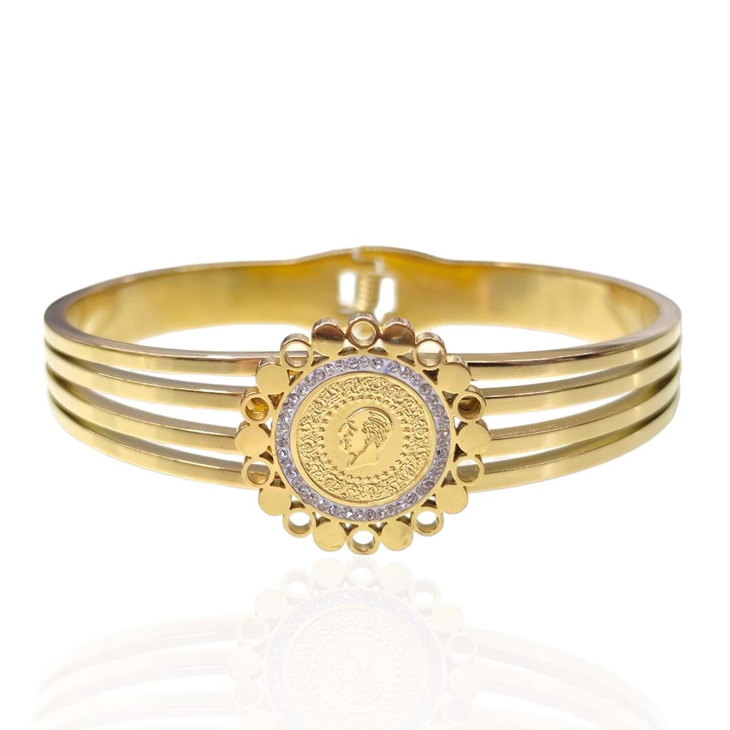 ÇELİK ÇİÇEK ÇERÇEVELİ ÇEYREK KELEPÇE BİLEZİK