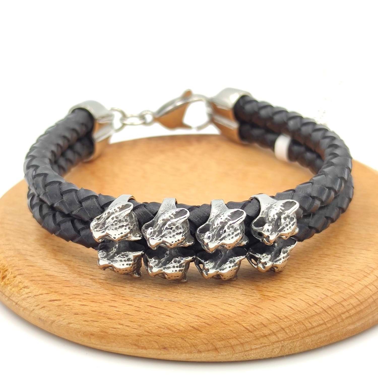 İKİ SIRA KURT ÖRGÜ DERİ ÇELİK BİLEKLİK