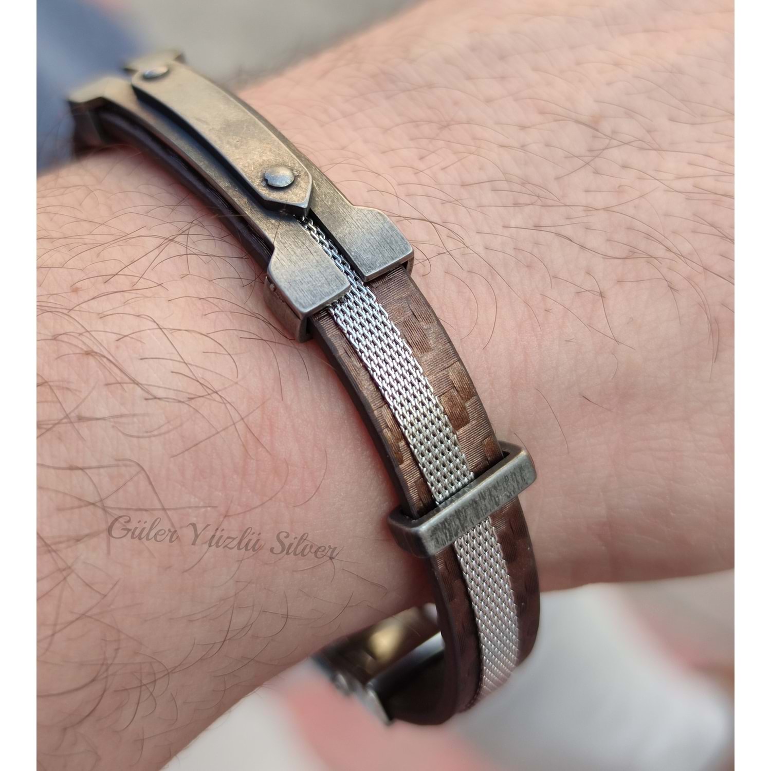 KAHVERENGİ KEMERLİ DERİ ÇELİK ERKEK BİLEKLİK
