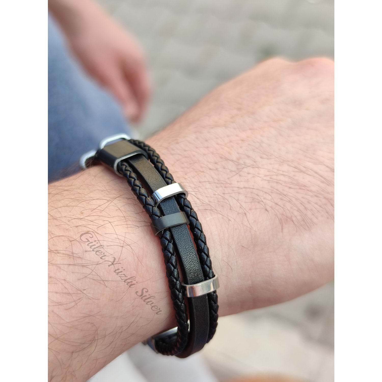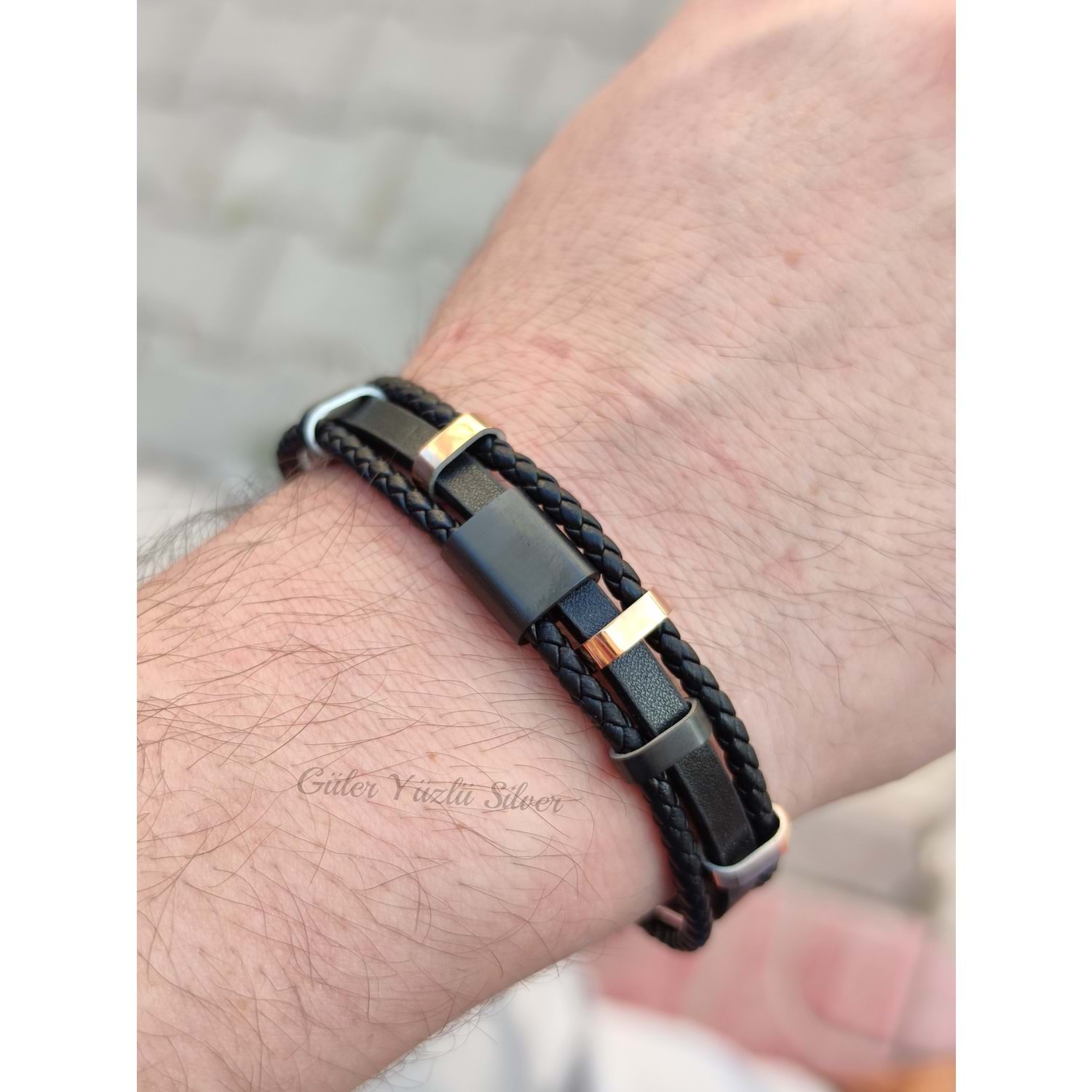 ÜÇ SIRA KİLİTLİ DERİ ÇELİK ERKEK BİLEKLİK