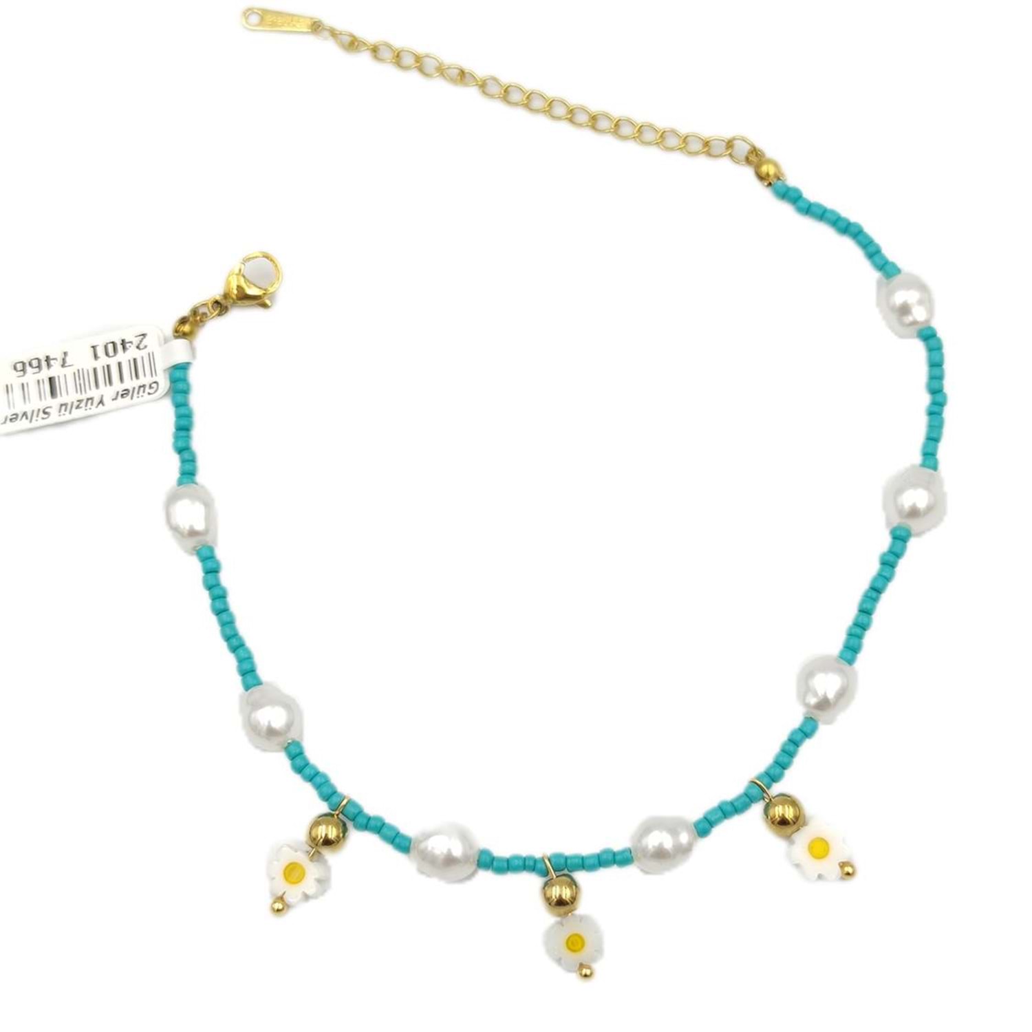 ÇELİK PAPATYALI MAVİ BONCUKLU HALHAL