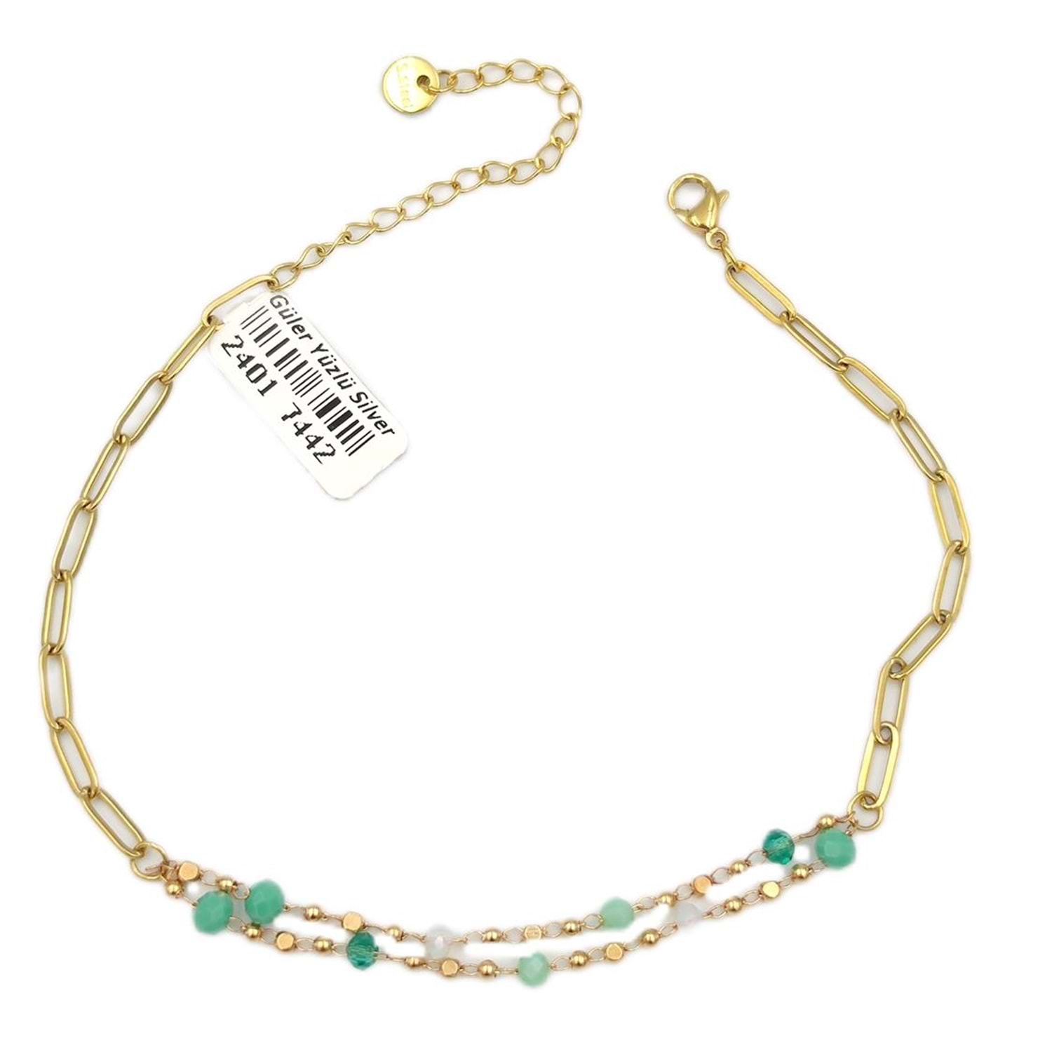 ÇELİK SALLANTILI YEŞİL BONCUK HALHAL