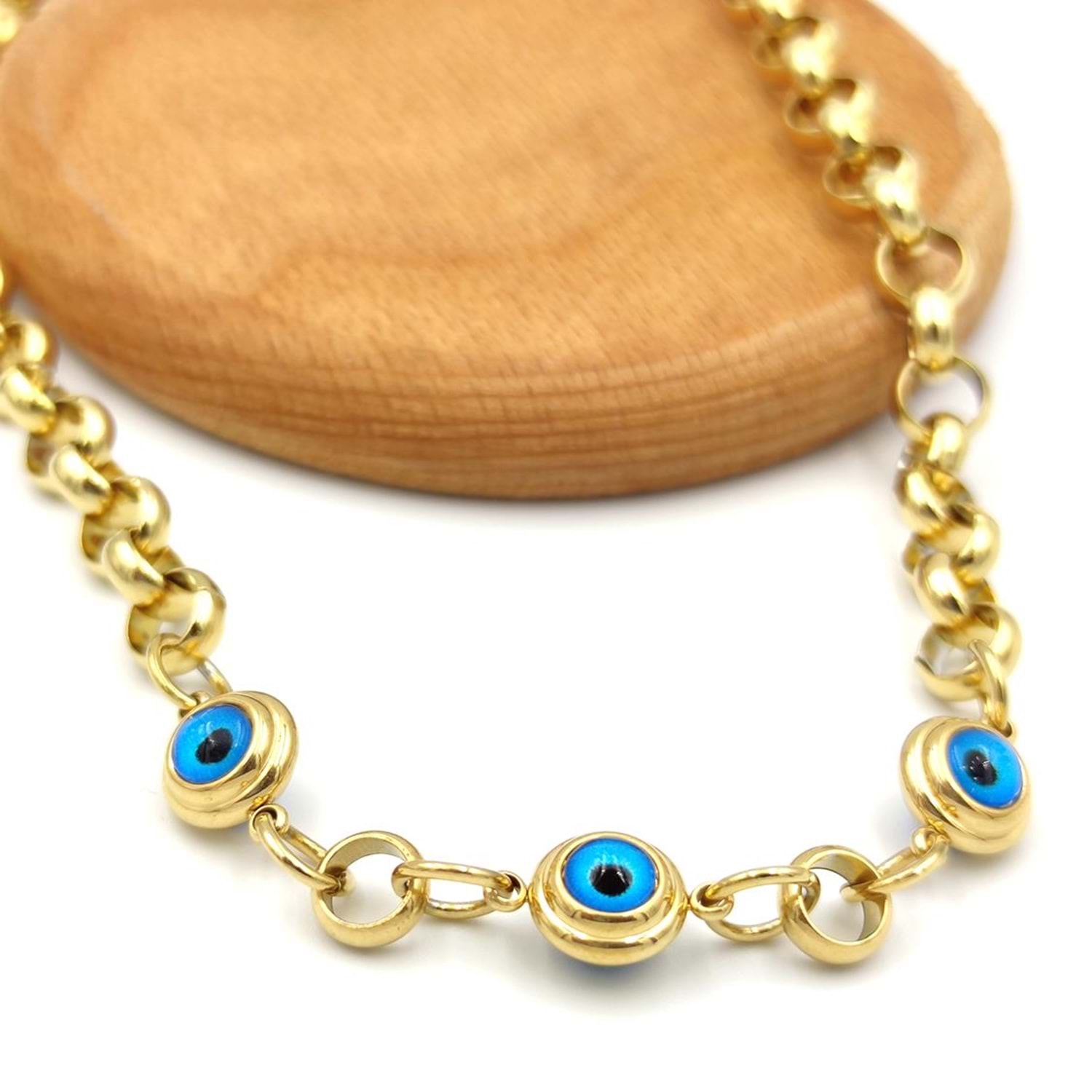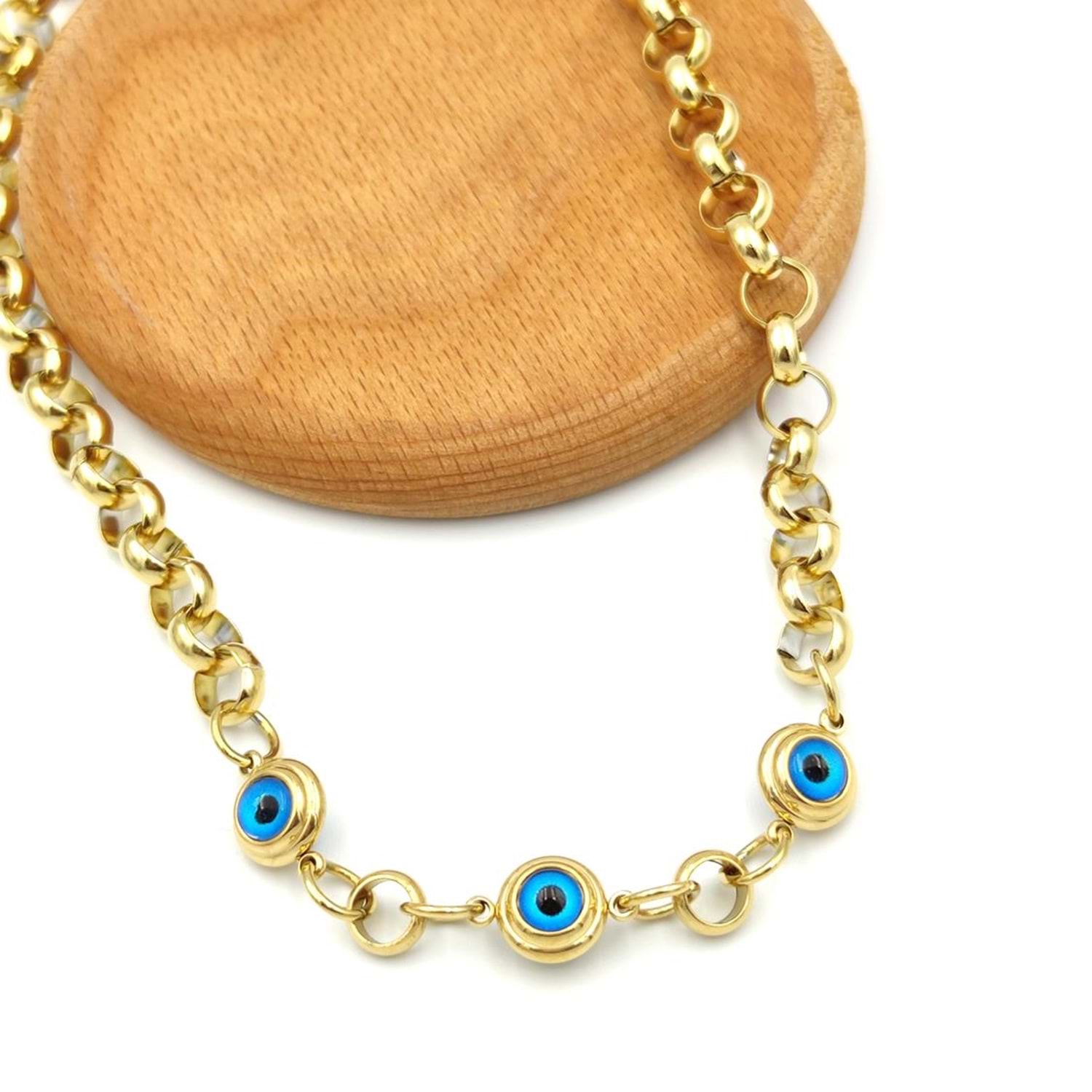 ÇELİK HALLOW ZİNCİR ÜÇLÜ CAM GÖZ KOLYE