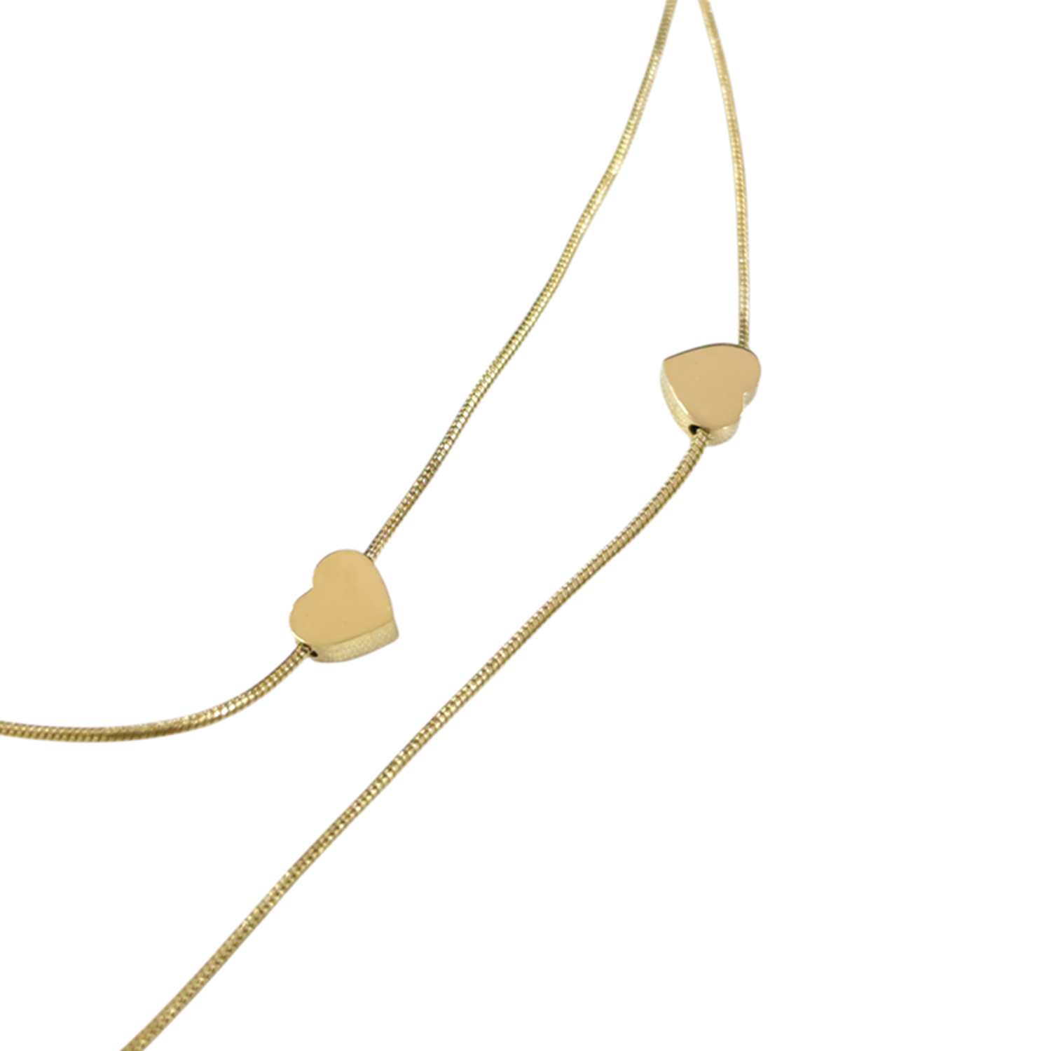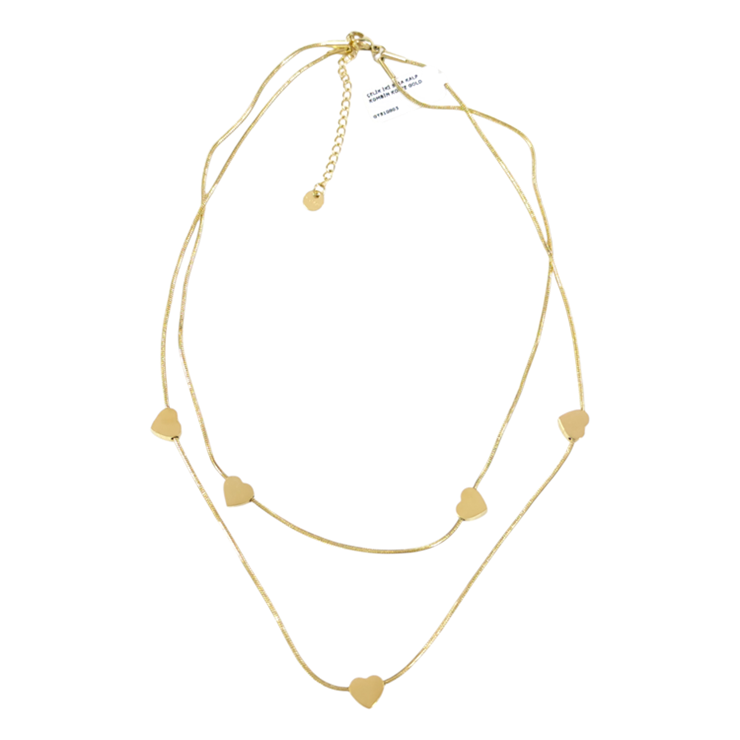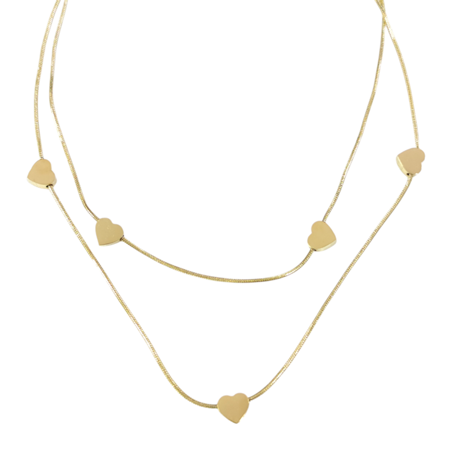 ÇELİK İKİ SIRA KALP KOMBİN KOLYE GOLD