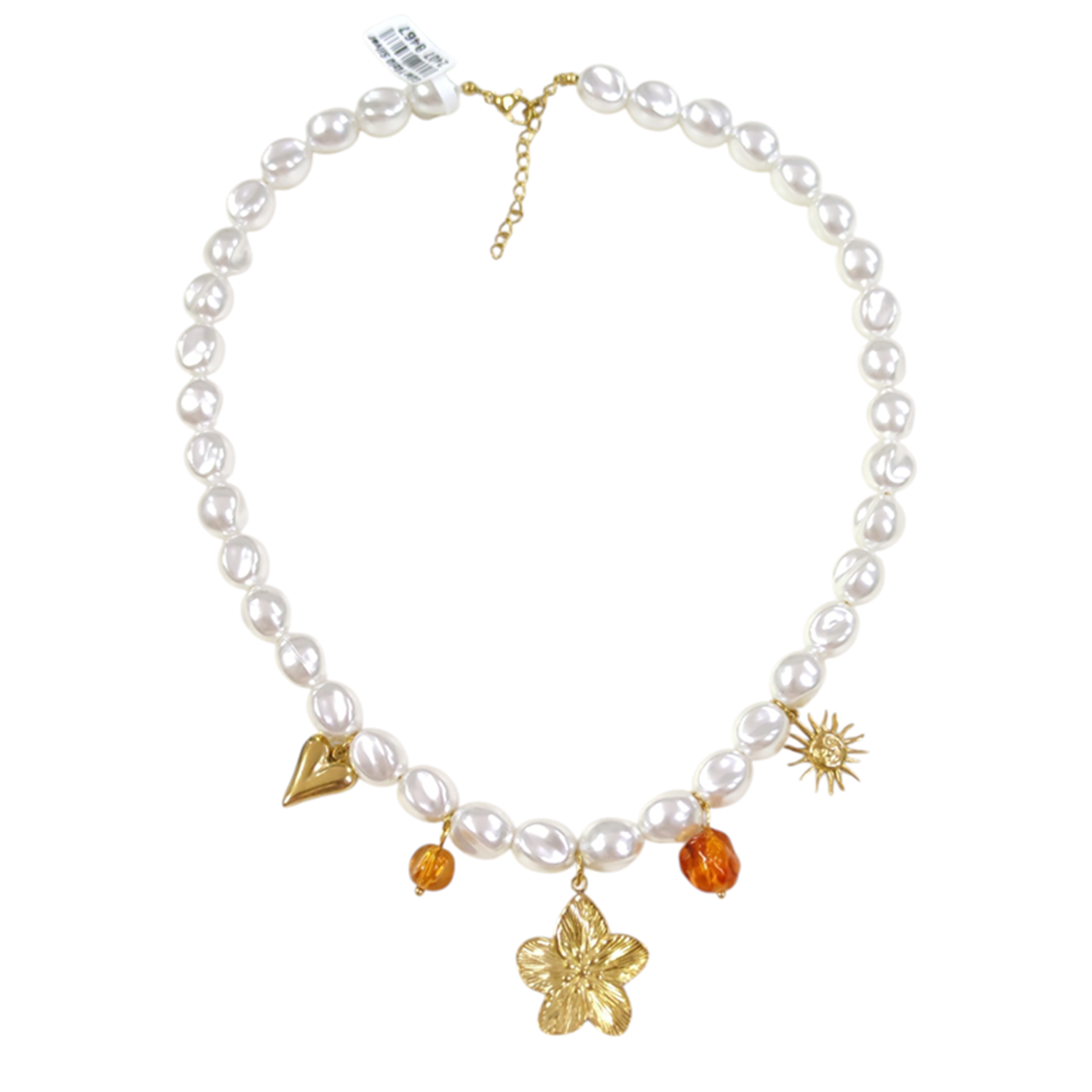 ÇELİK İNCİLİ ÇİÇEK KOLYE 40+5 CM GOLD