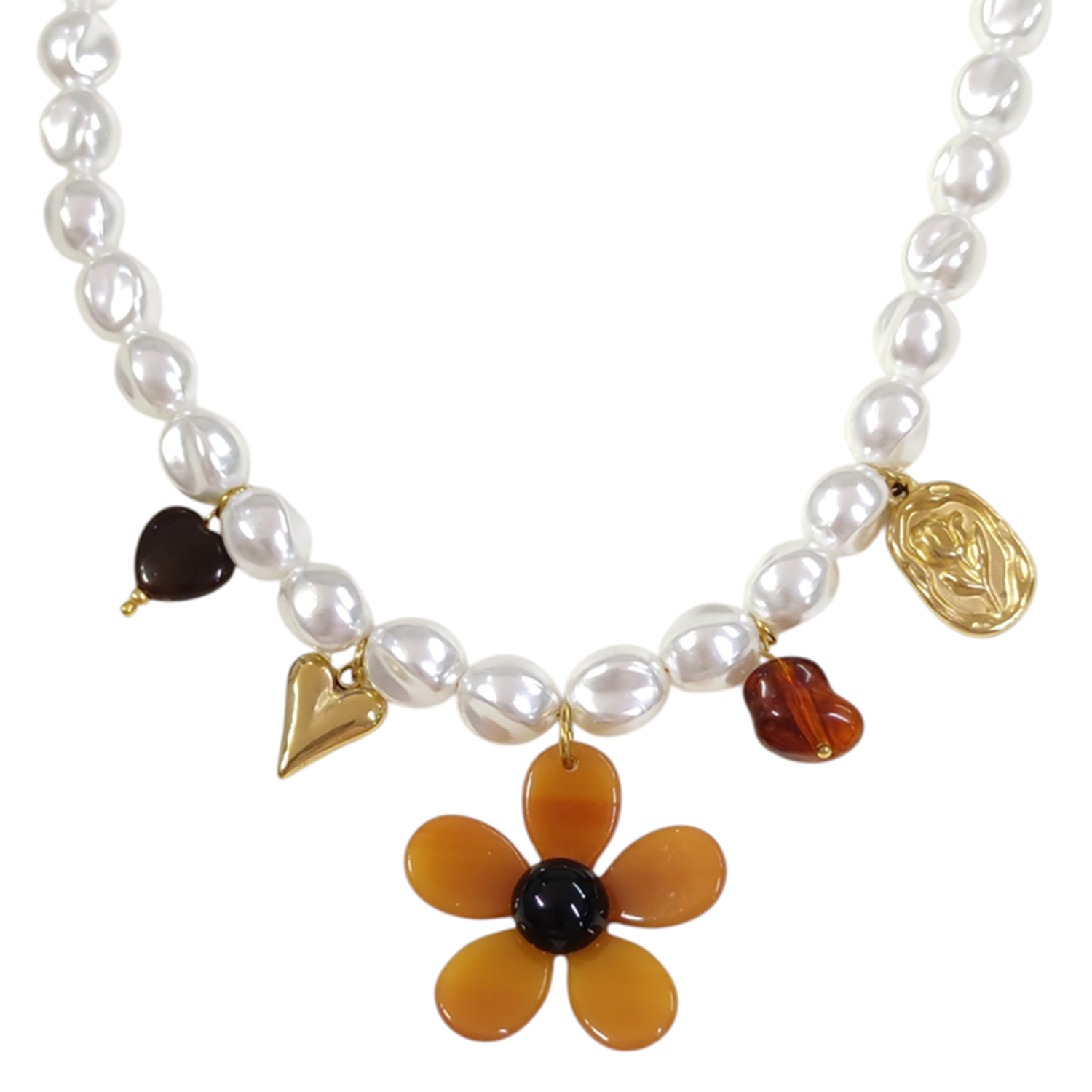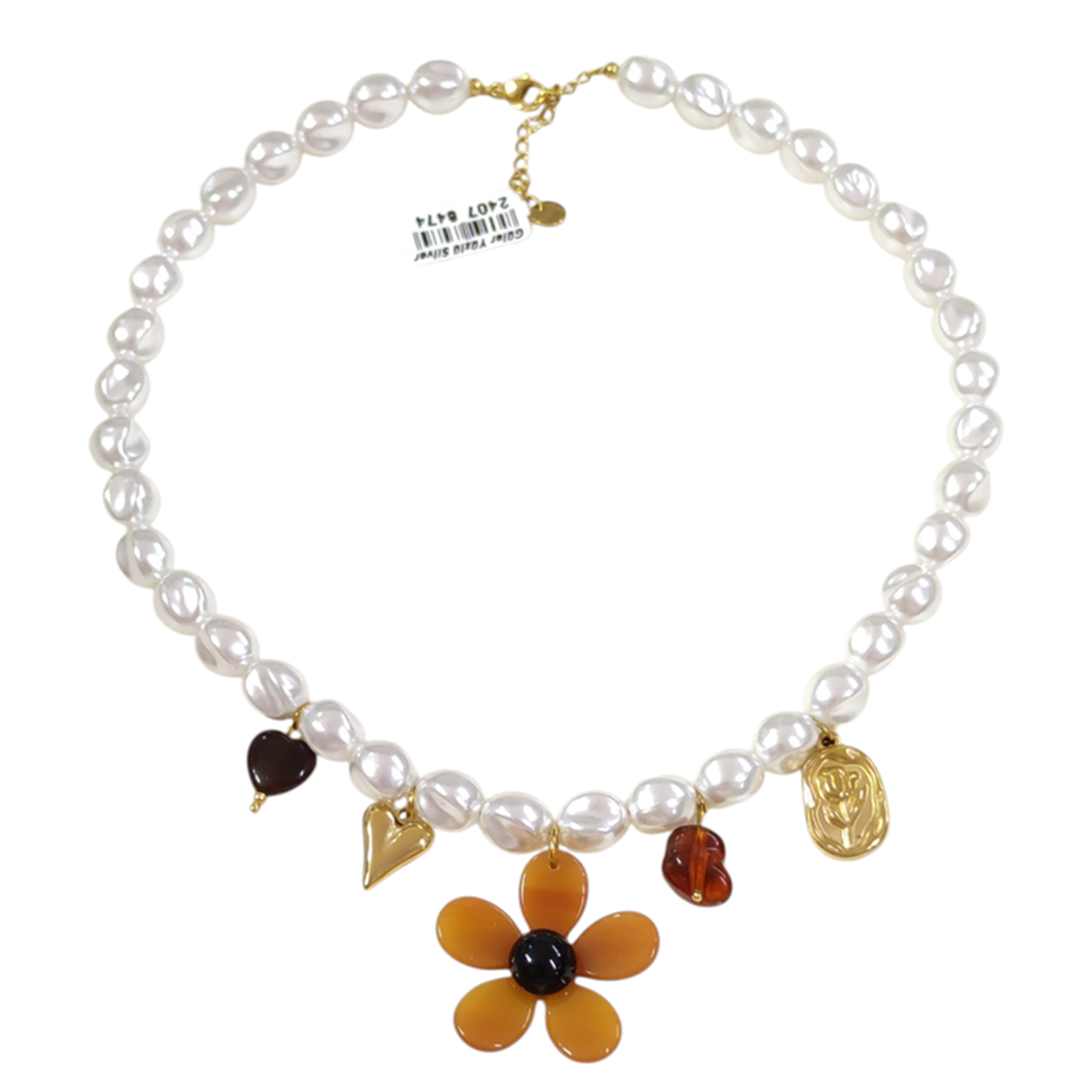 ÇELİK İNCİLİ PAPATYA KOLYE 40+5 CM GOLD