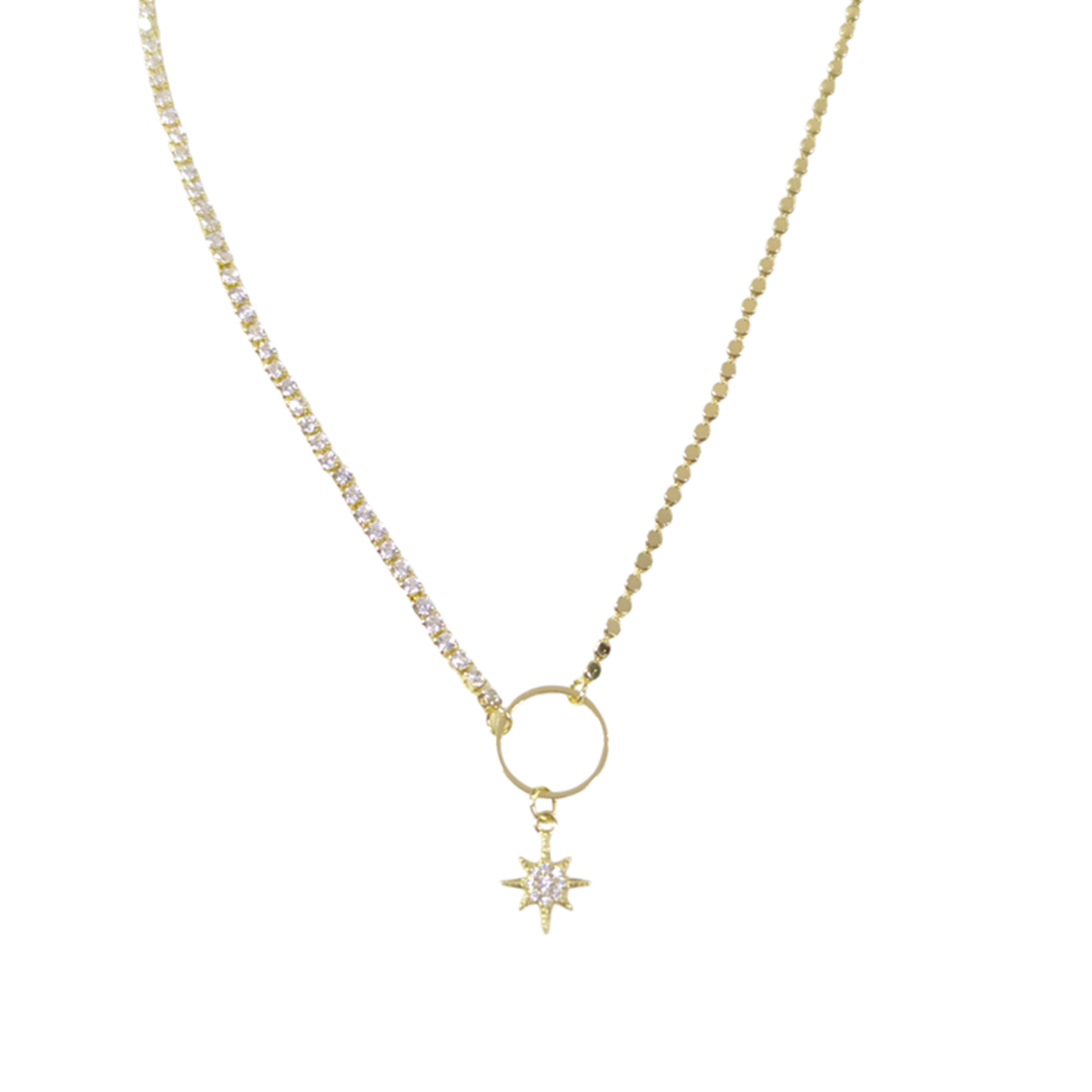 ÇELİK KUTUP YILDIZI SU YOLU DETAYLI KOLYE 40+5 CM GOLD