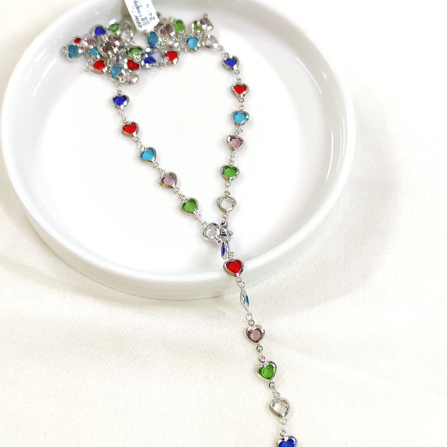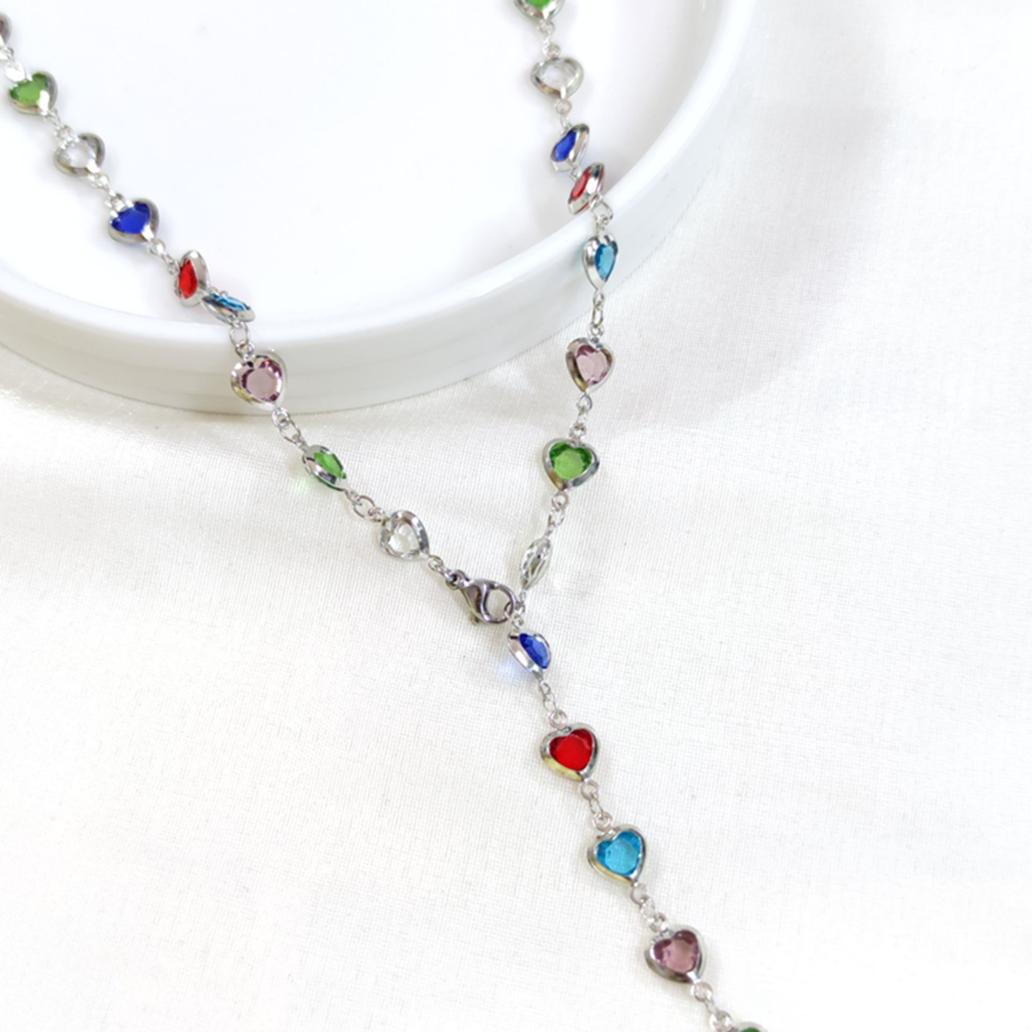ÇELİK RENKLİ KALP Y KOLYE ZİNCİR GOLD 70 CM