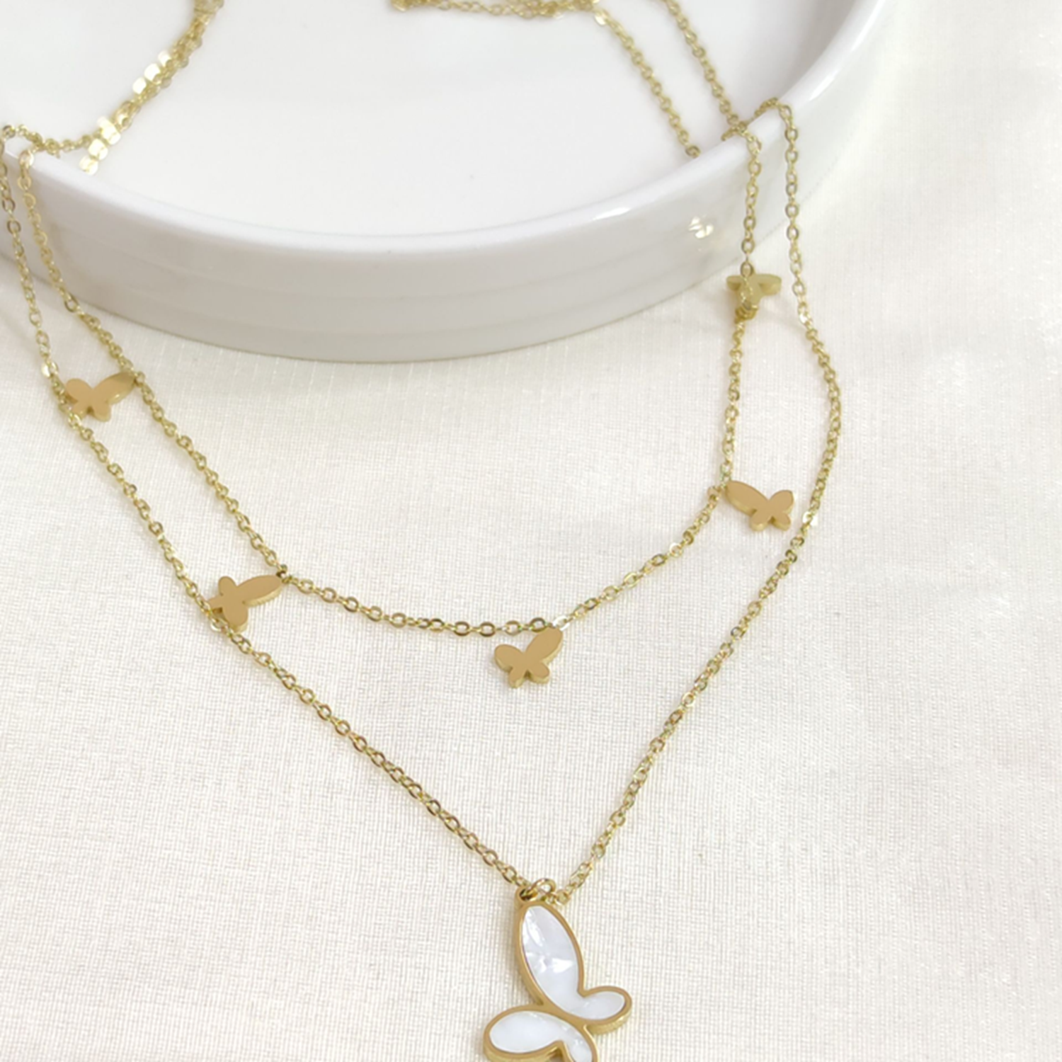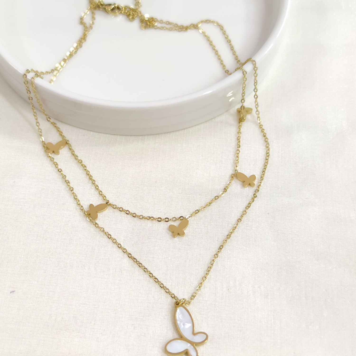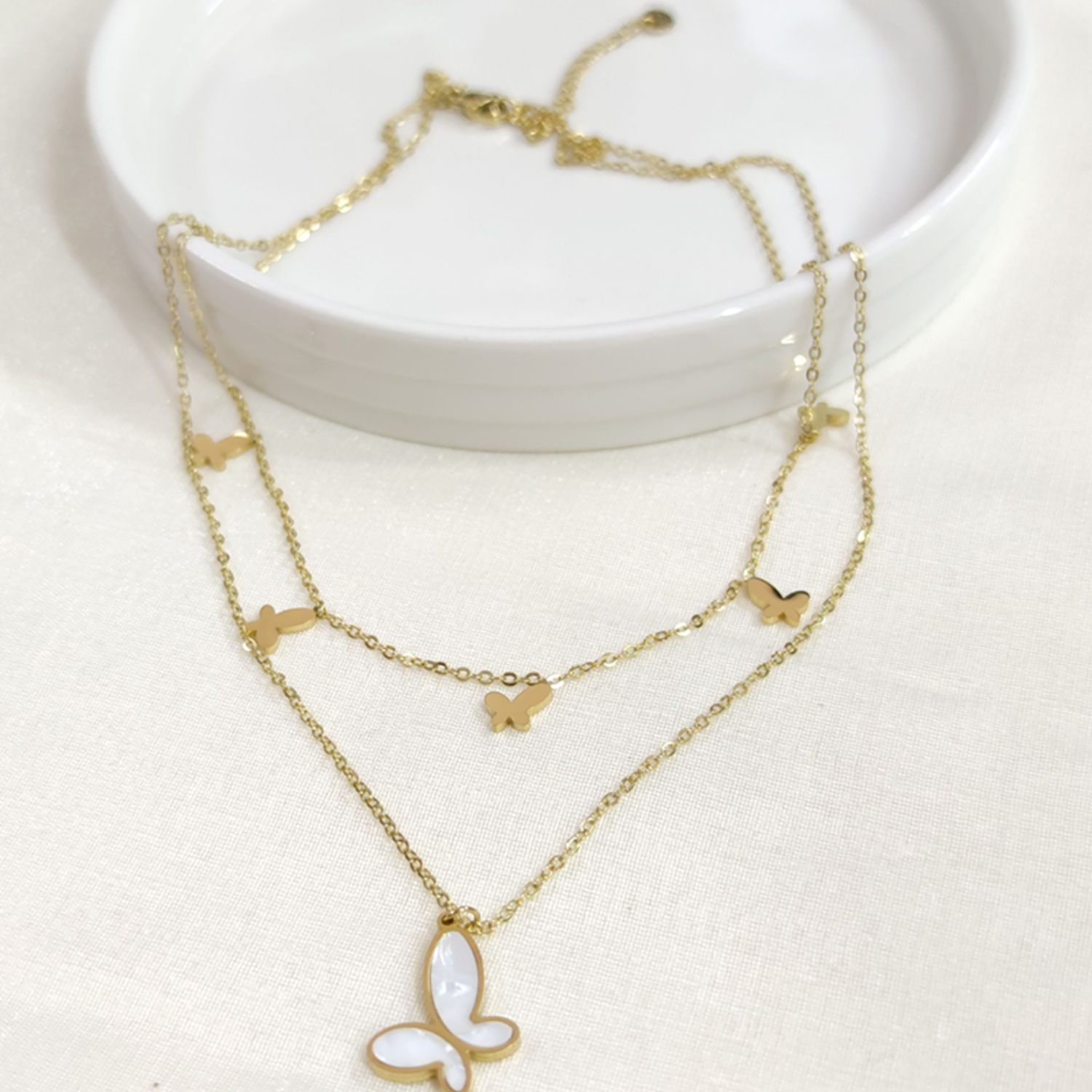 ÇELİK SEDEF KELEBEK KOMBİN İKİLİ KOLYE