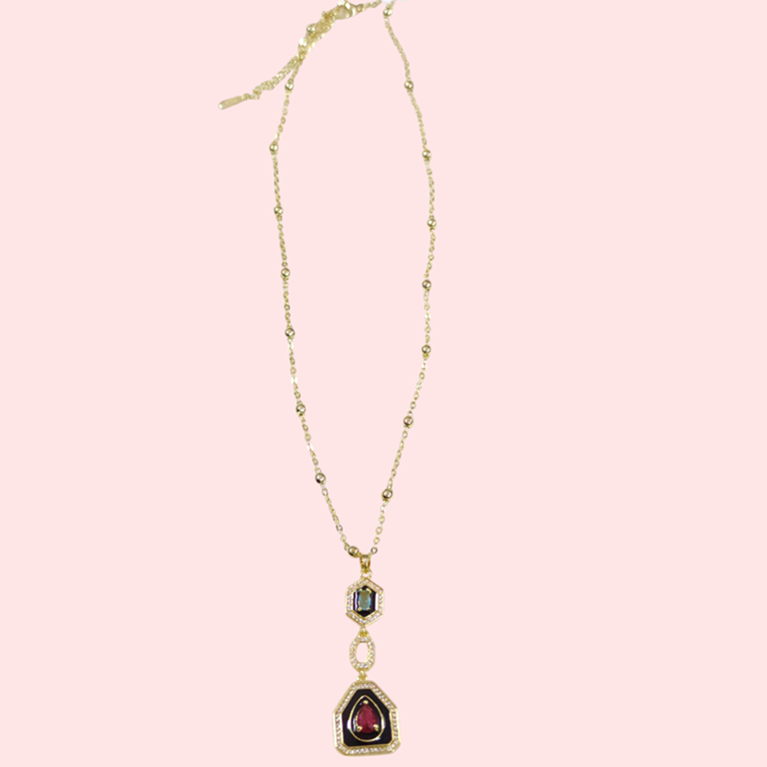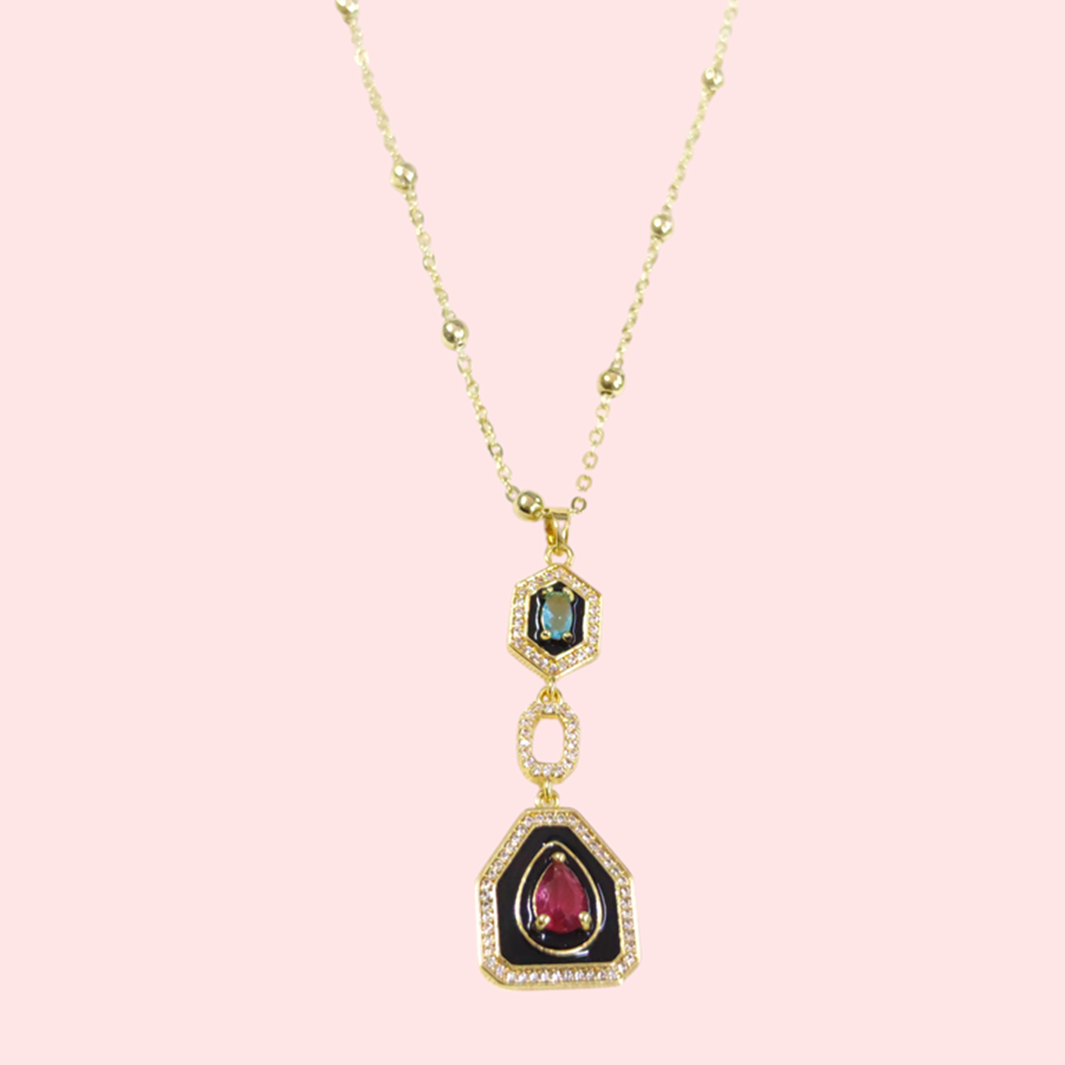 ÇELİK SİYAH MİNELİ TOP ZİNCİRLİ Y KOLYE 40+5 CM