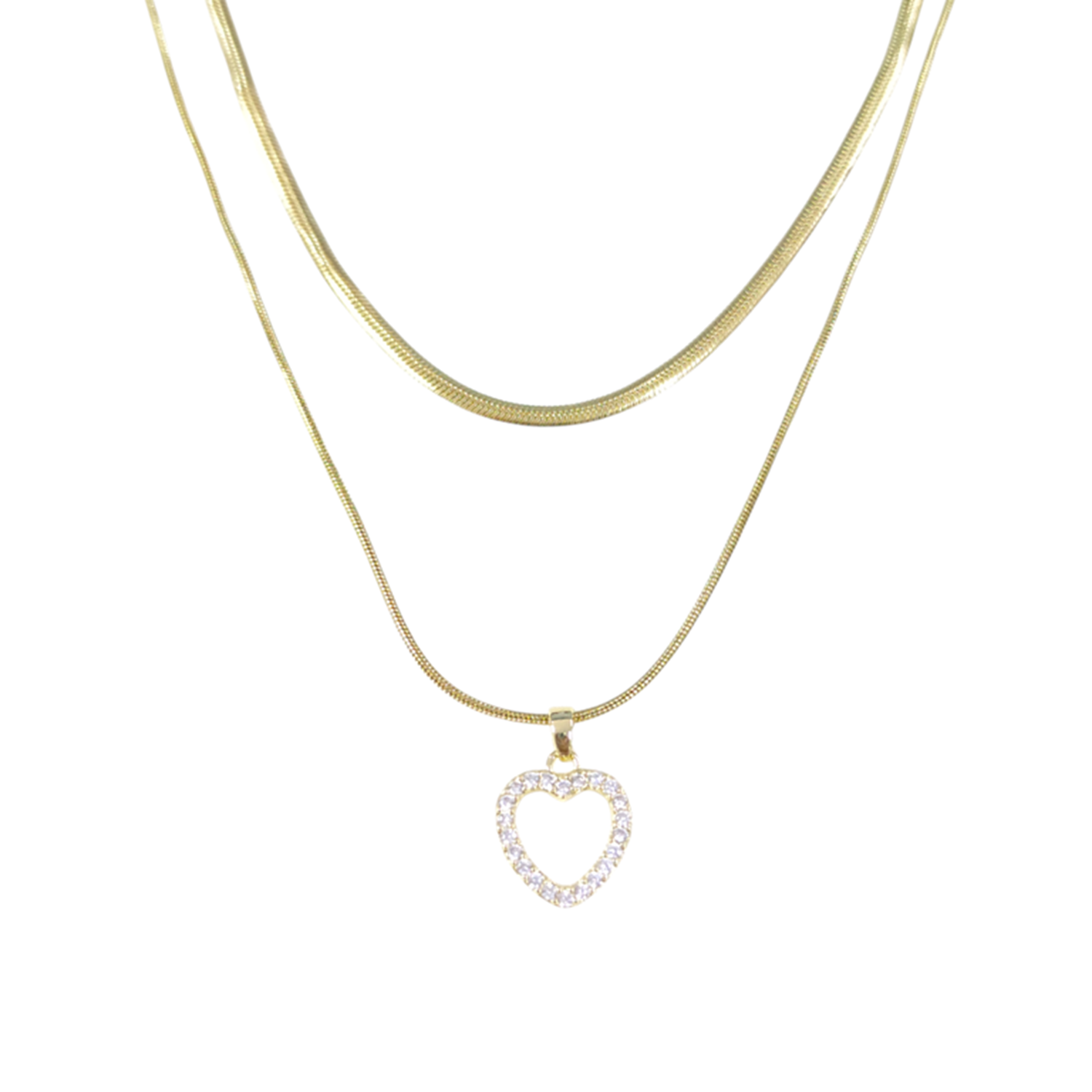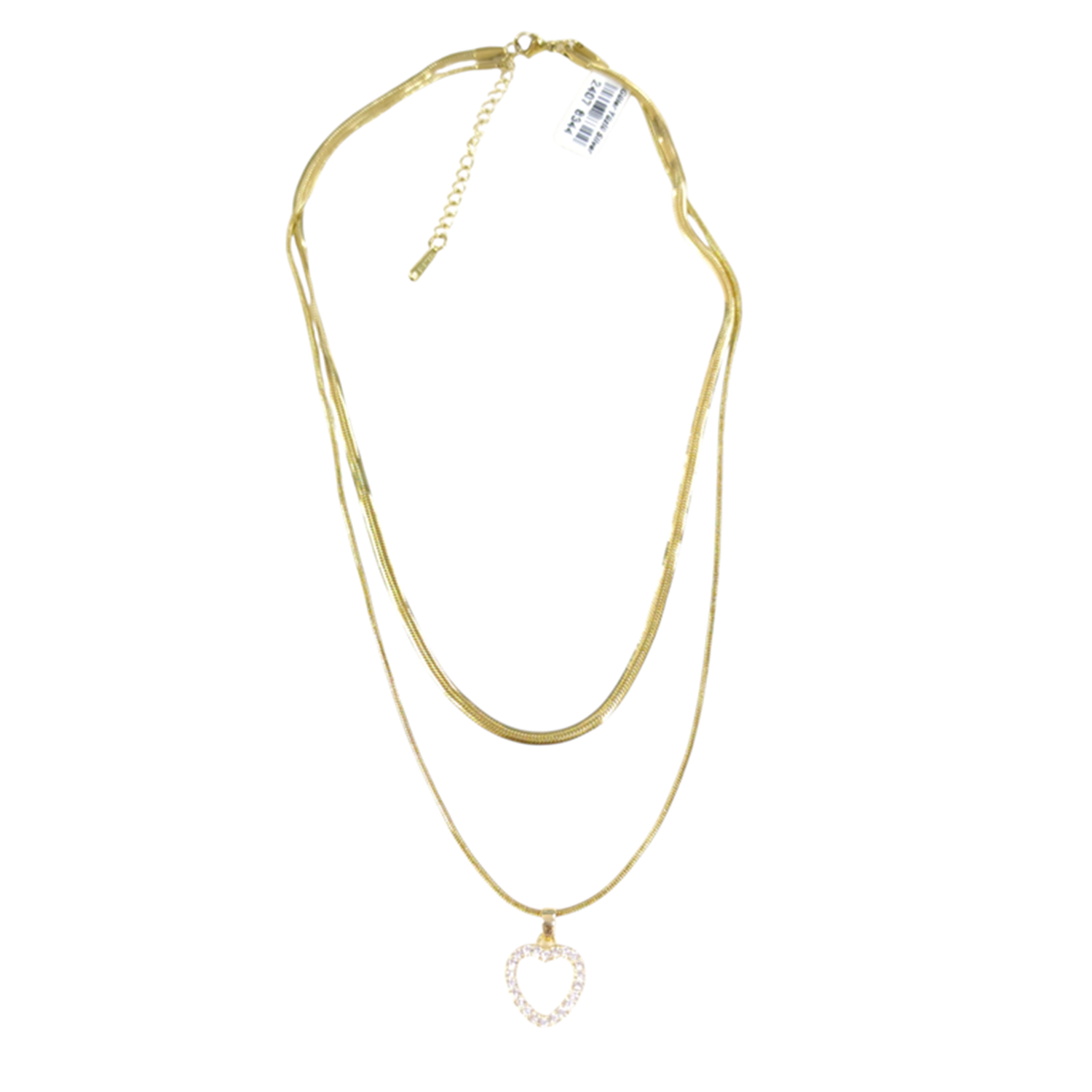 ÇELİK TAŞLI KALP KOMBİN KOLYE GOLD