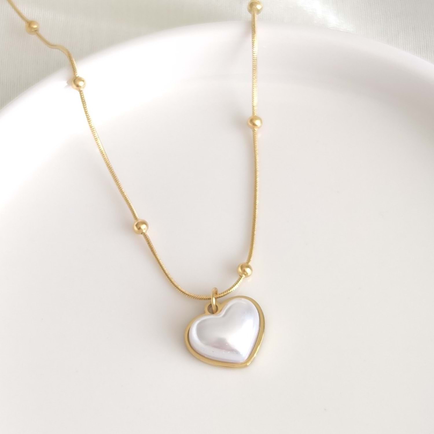 ÇELİK TOP ZİNCİRLİ BEYAZ KALP KOLYE