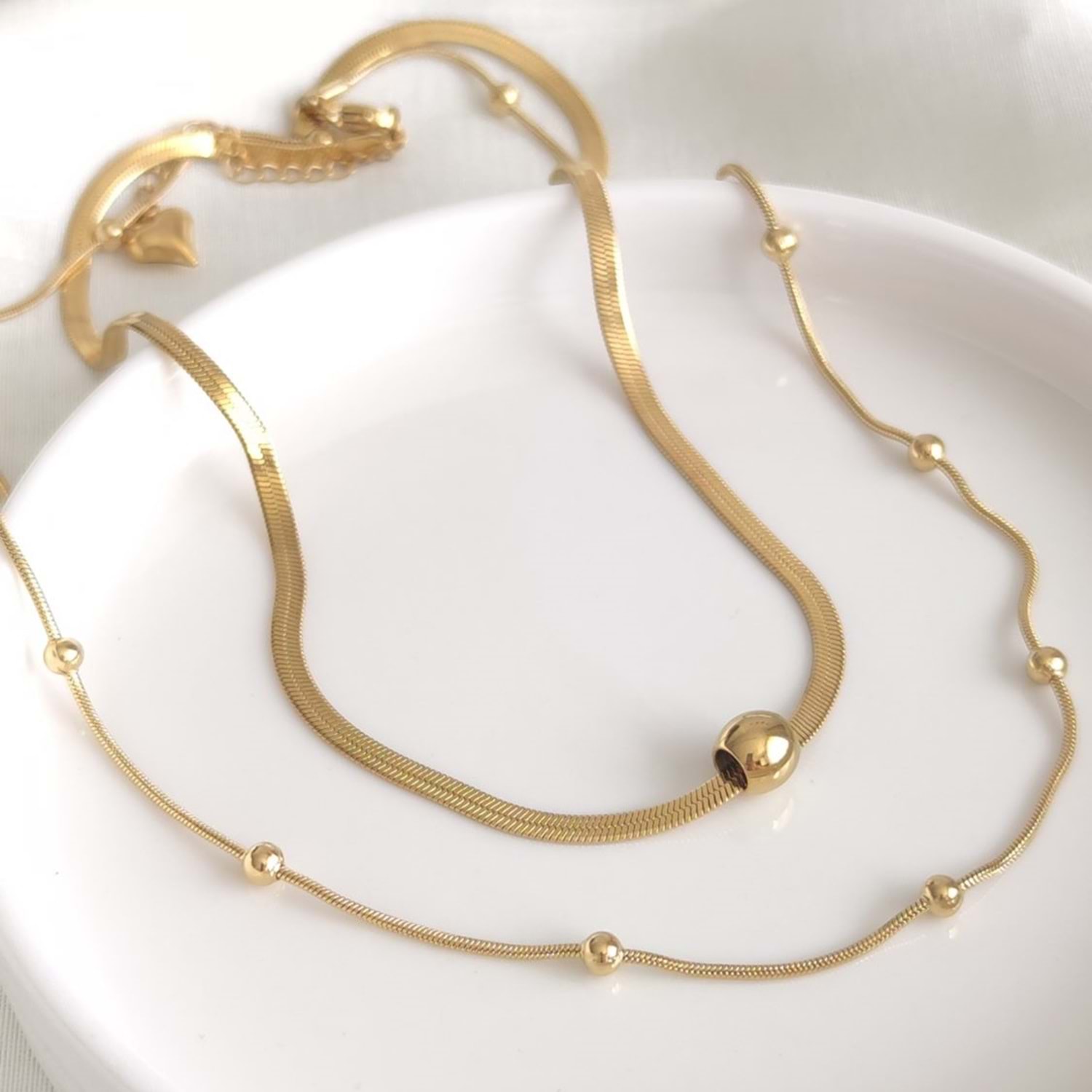 ÇELİK YASSI VE TOP ZİNCİR KOMBİN İKİLİ KOLYE