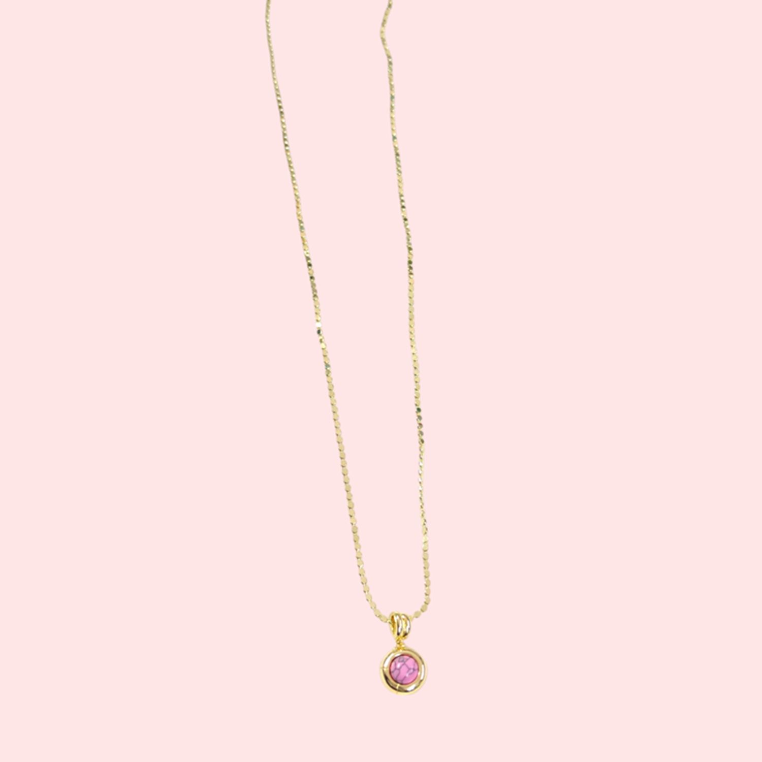 ÇELİK YUVARLAK PEMBE KOLYE 60 CM