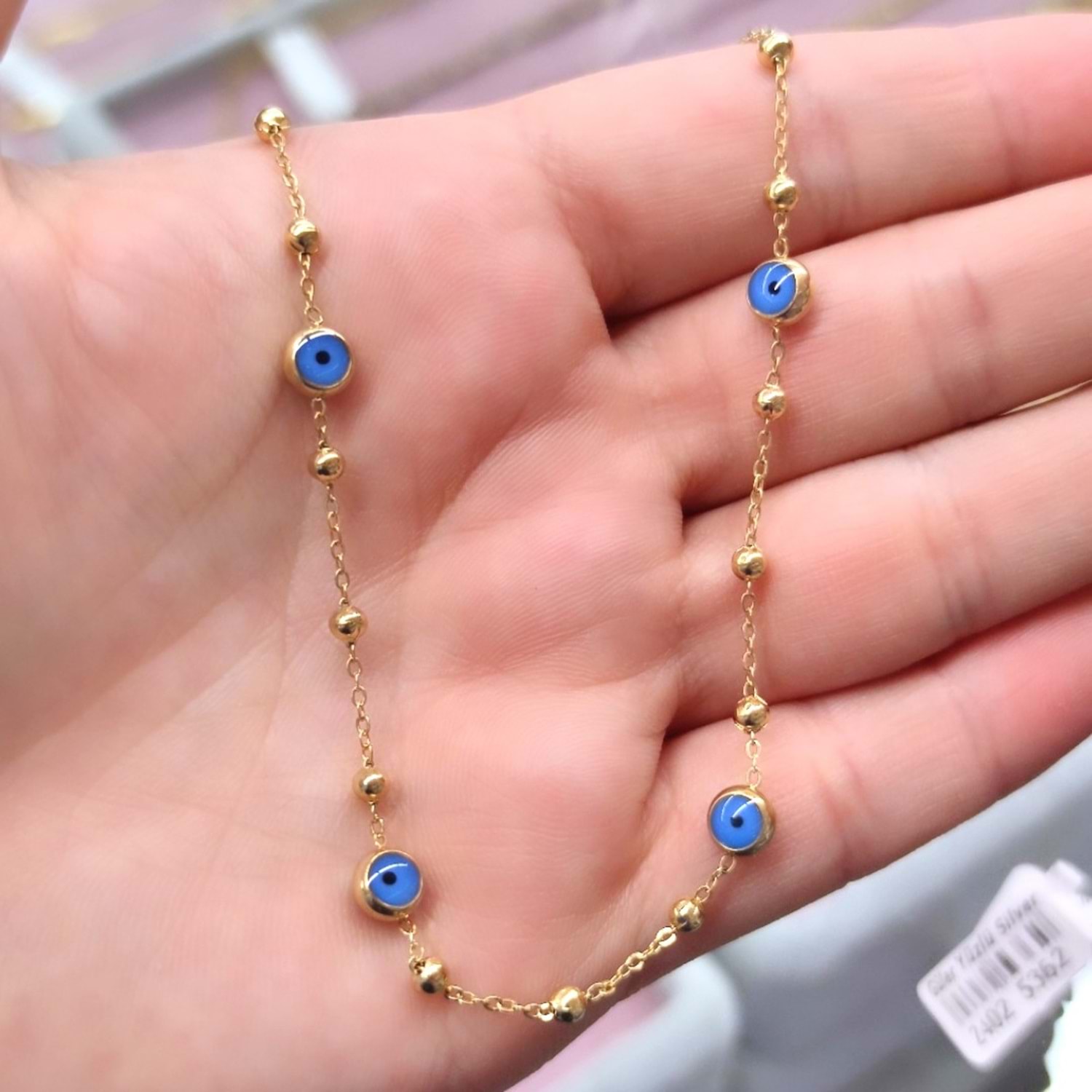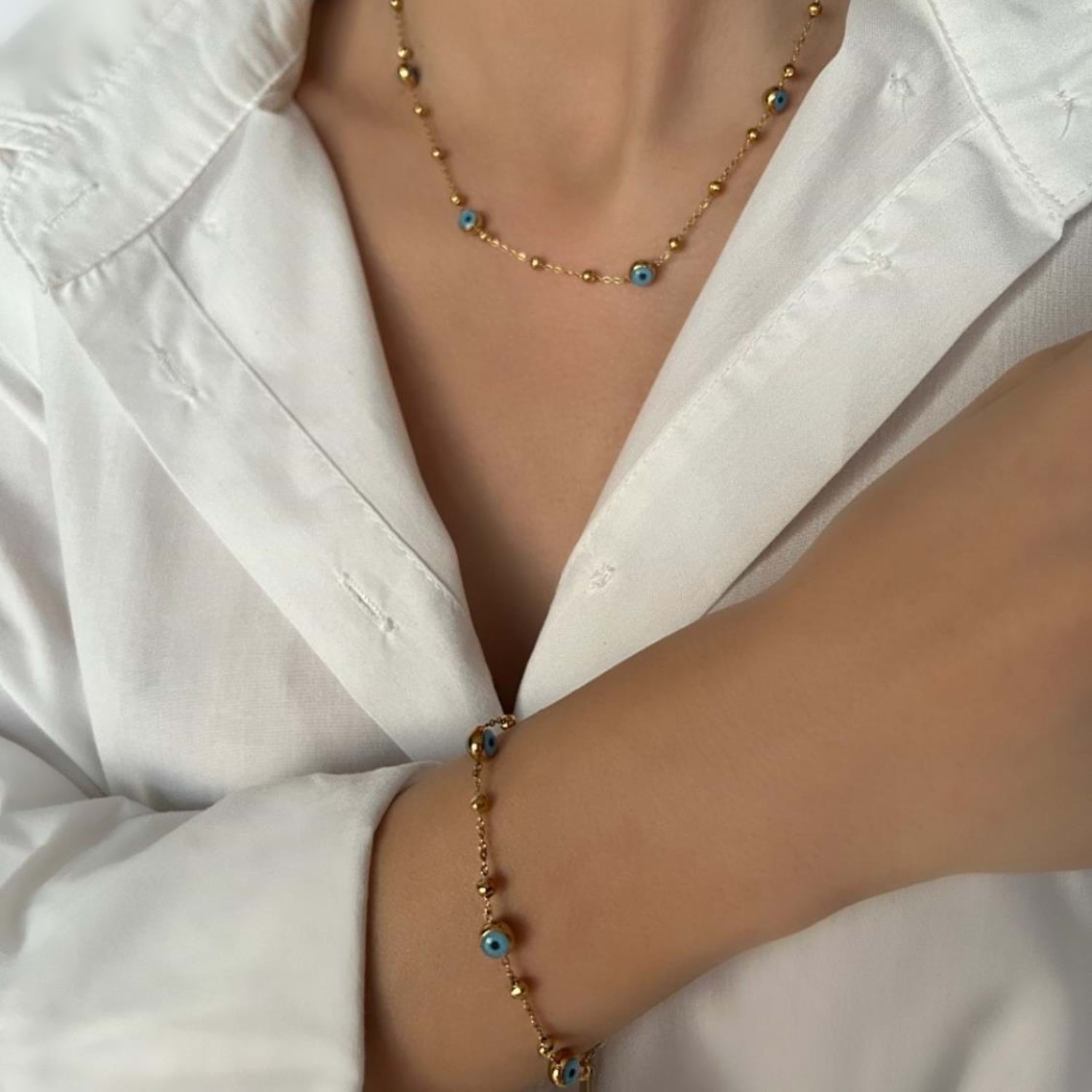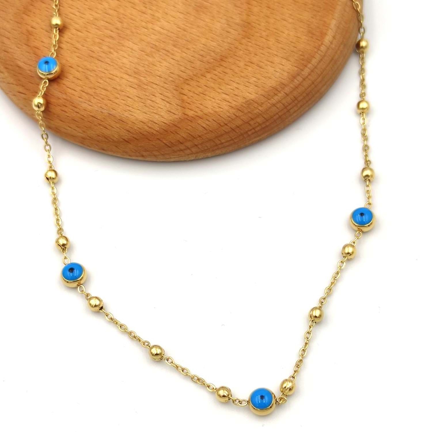 NAZAR TOP ZİNCİRLİ ÇELİK KOLYE
