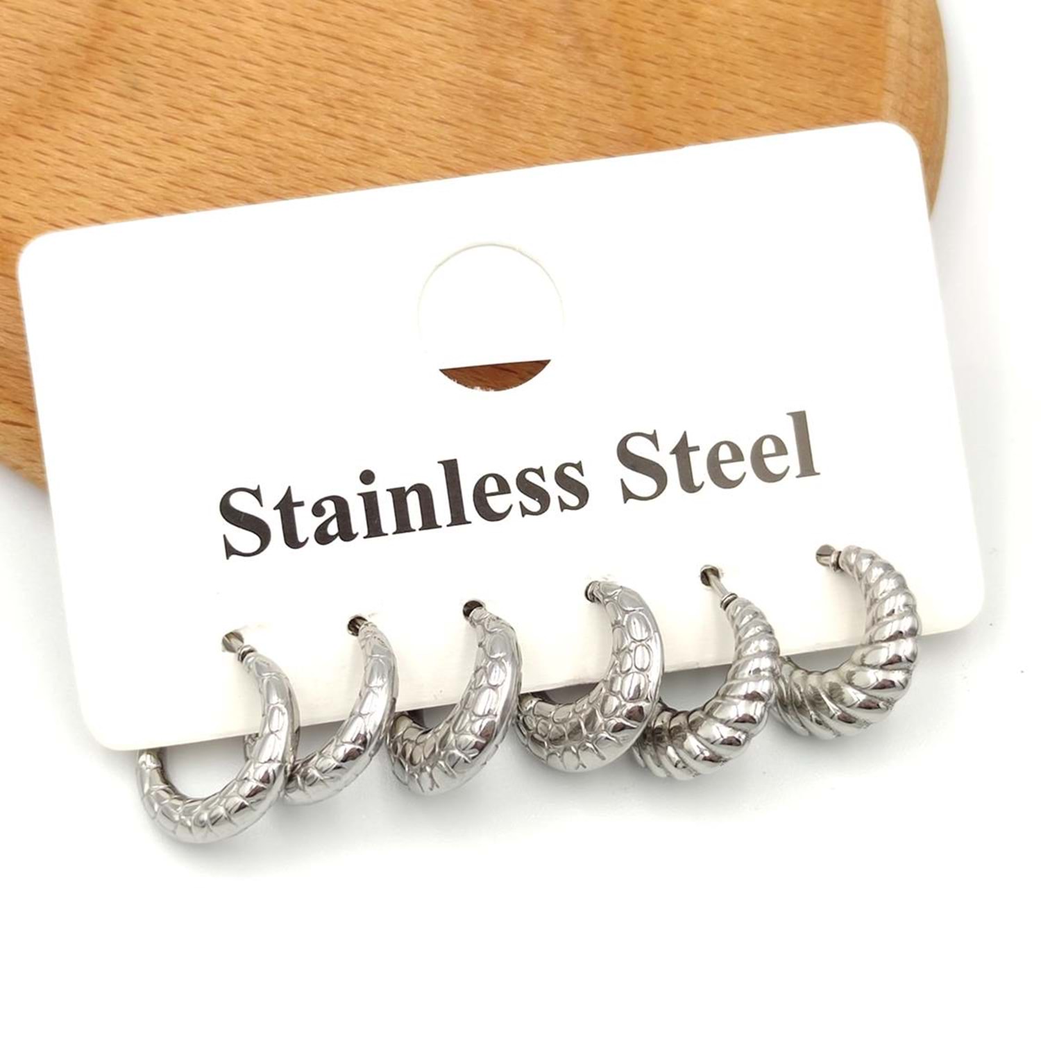 1. KALİTE ÇELİKTİR 6 LI SET OLARAK SATILMAKTADIR HALKA ÇAPLARI 1 CM DİR KARARMAZ SOLMAZ ALERJİ YAPMAZ STAINLESS STEEL