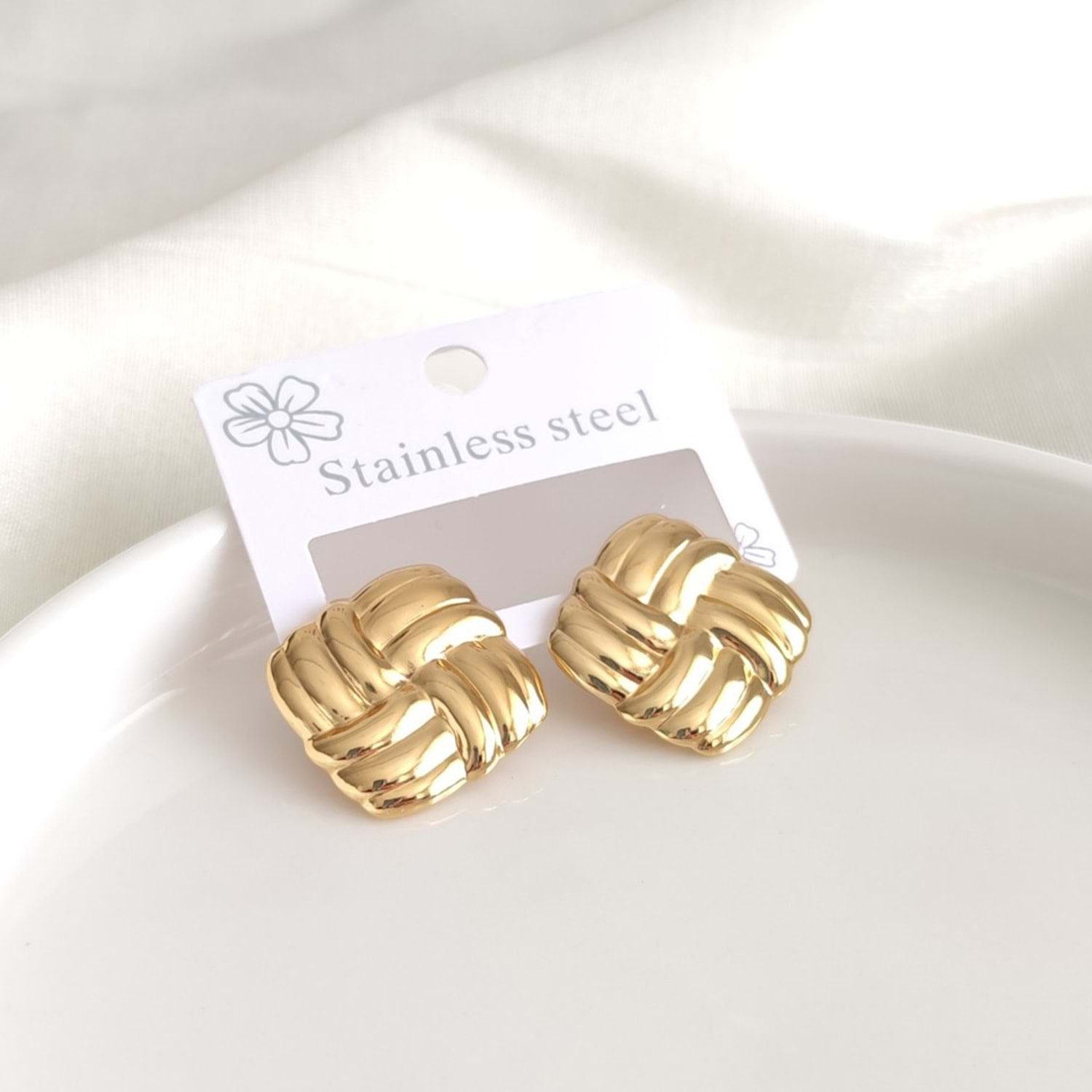 ÇELİK 2 CM KARE DESENLİ BÜYÜK KÜPE
