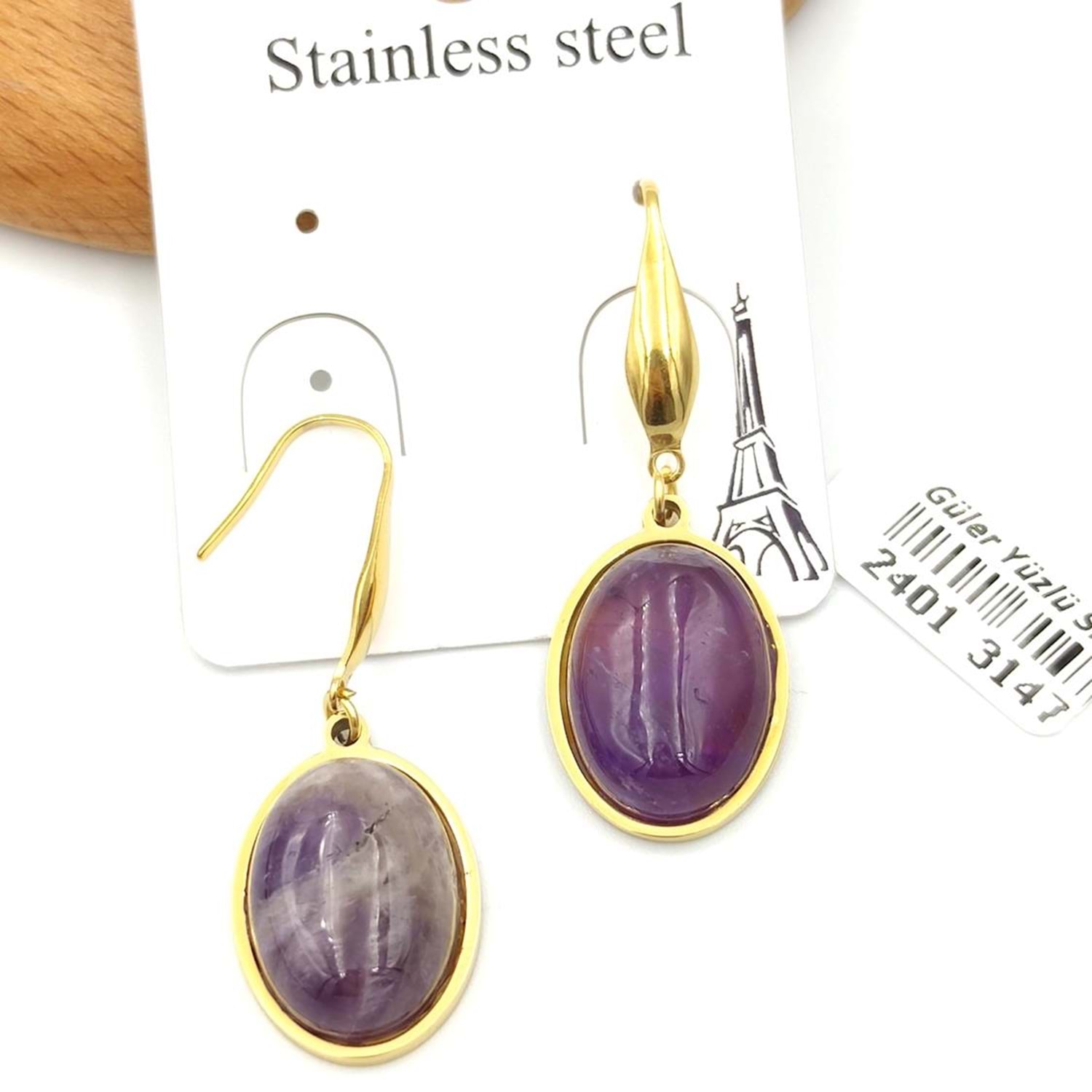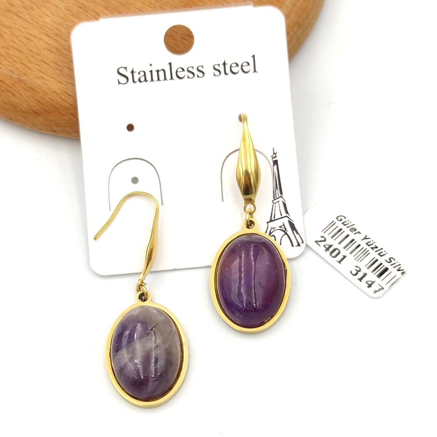 ÇELİK OVAL MOR TAŞLI SALLANTILI KÜPE