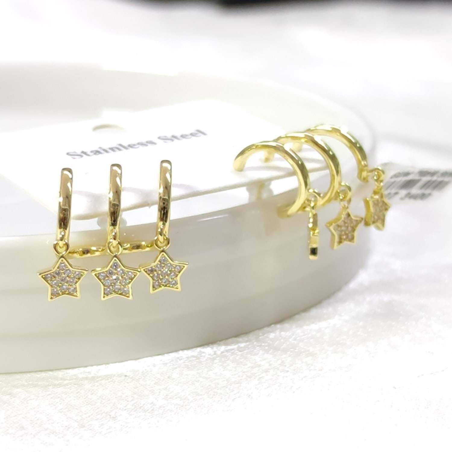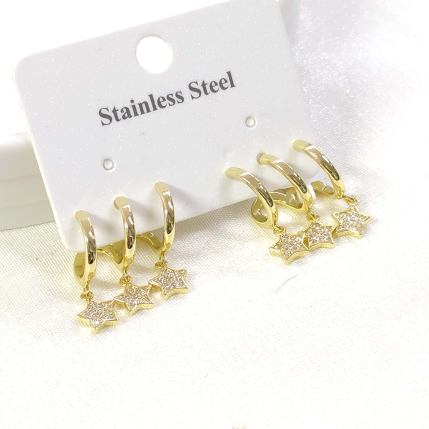 ÇELİK ÜÇ GÖRÜNÜMLÜ YILDIZ KÜPE - ALTIN SARI
