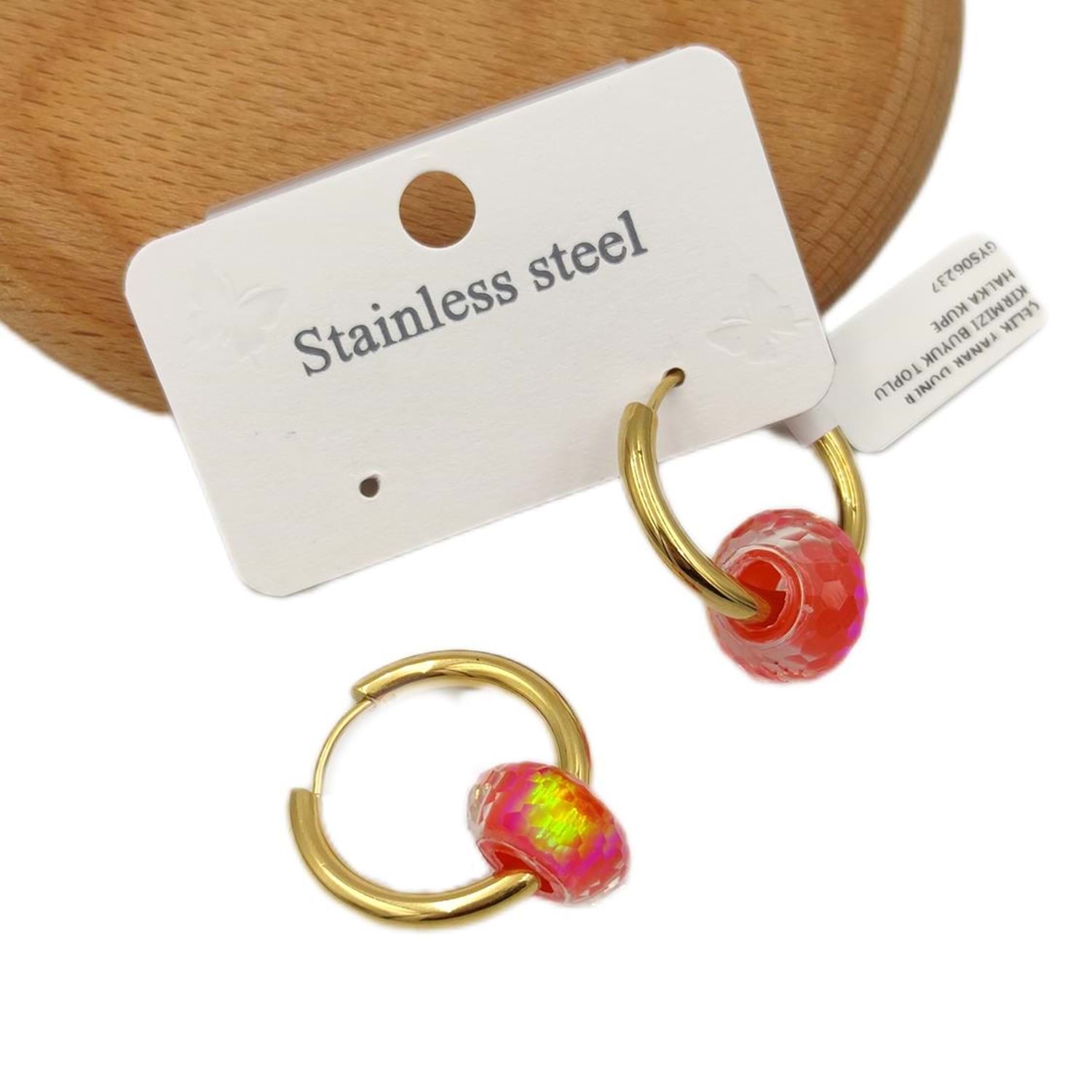 ÇELİK YANAR DÖNER KIRMIZI BÜYÜK TOPLU HALKA KÜPE