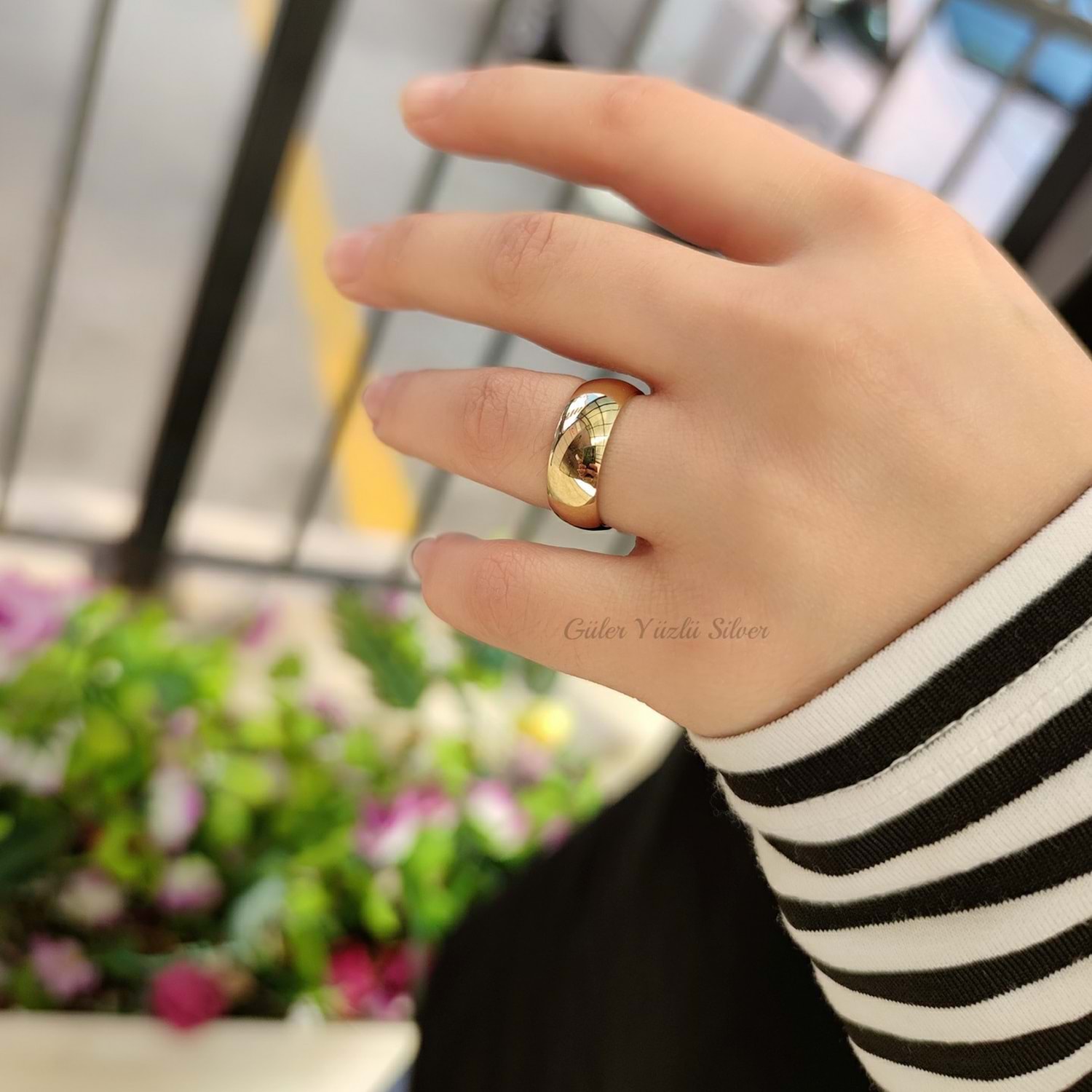 7 MM ALTIN BOMBELİ DÜZ GÜMÜŞ ALYANS