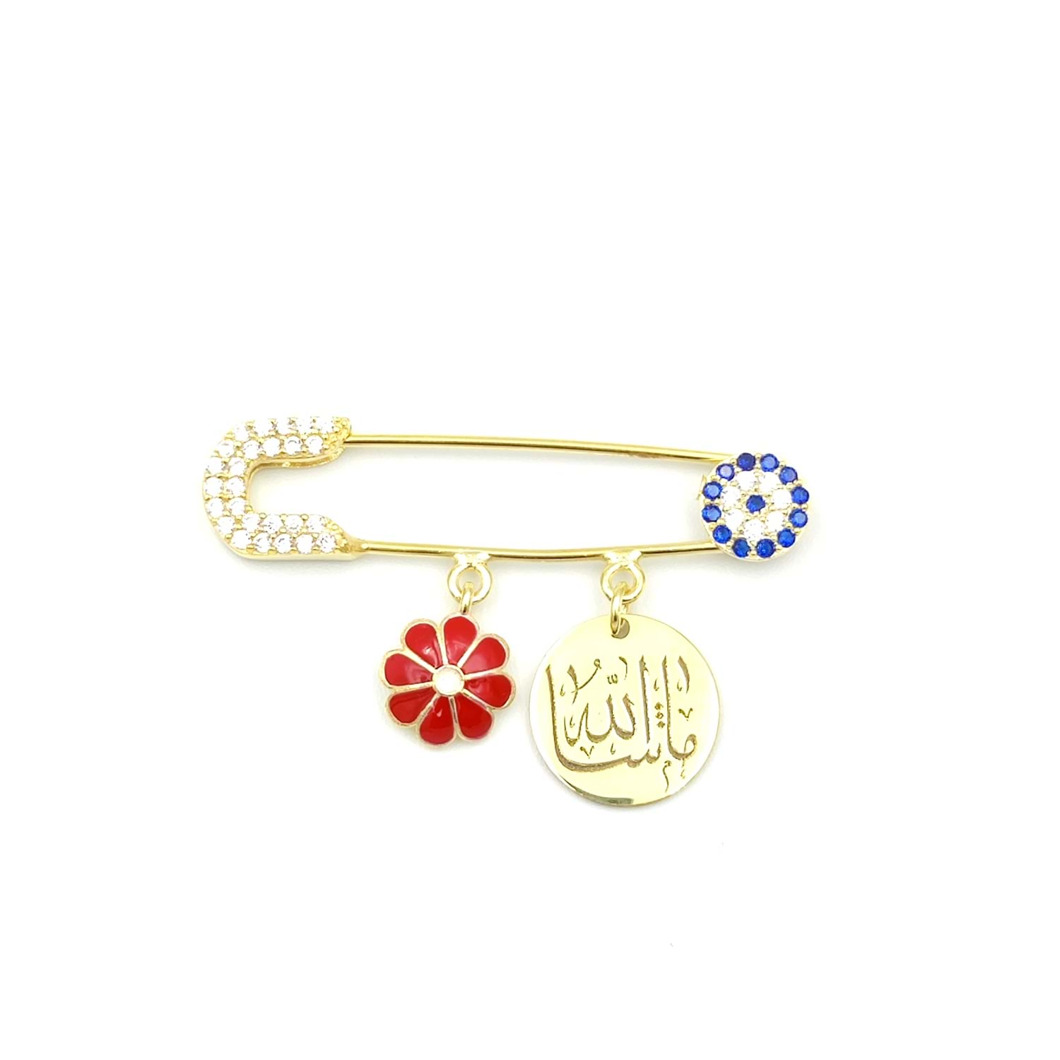 KIRMIZI PAPATYA ALLAH YAZILI ÇENGEL GÜMÜŞ BEBEK İĞNESİ