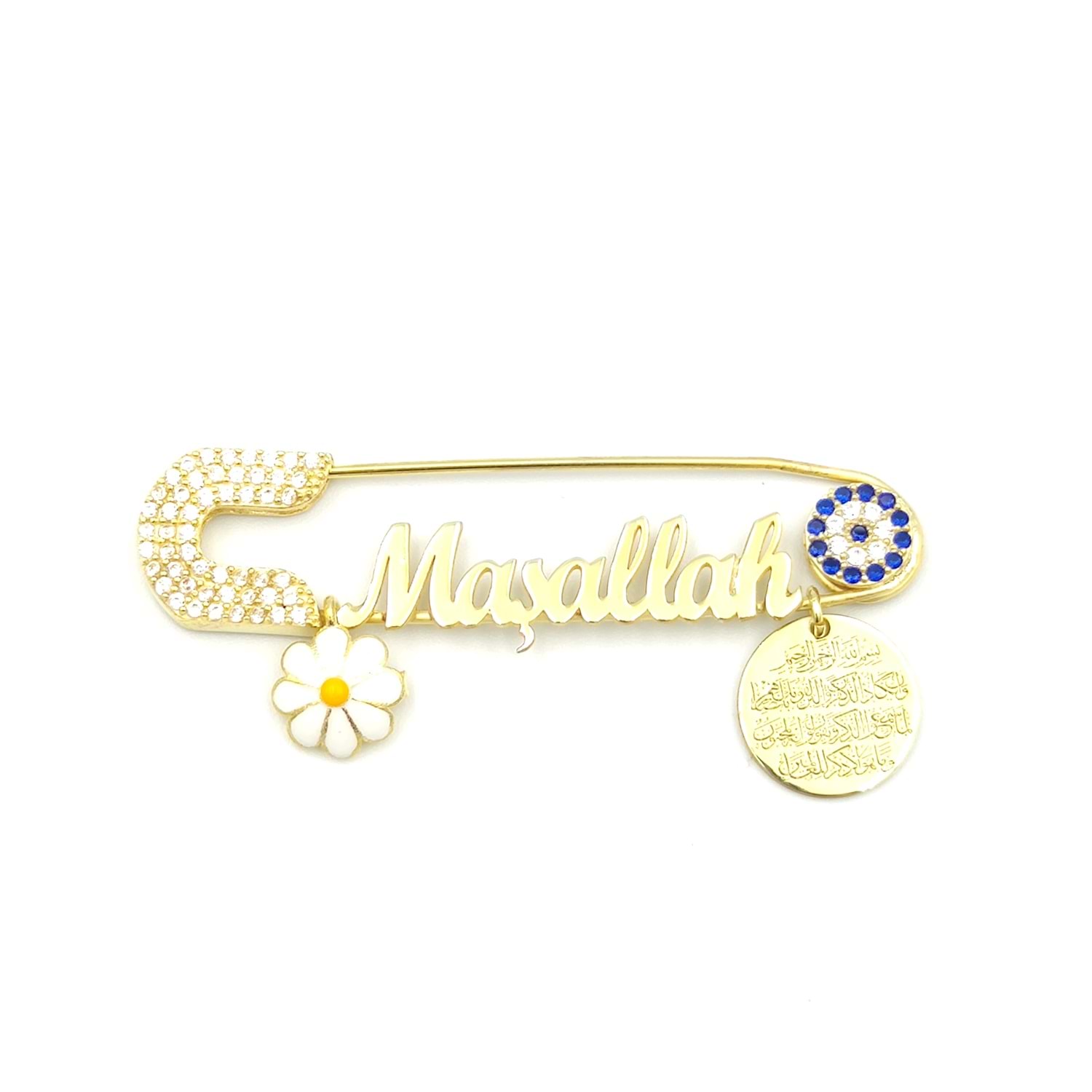 MAŞALLAH YAZILI PAPATYALI ÇENGEL GÜMÜŞ BEBEK İĞNESİ