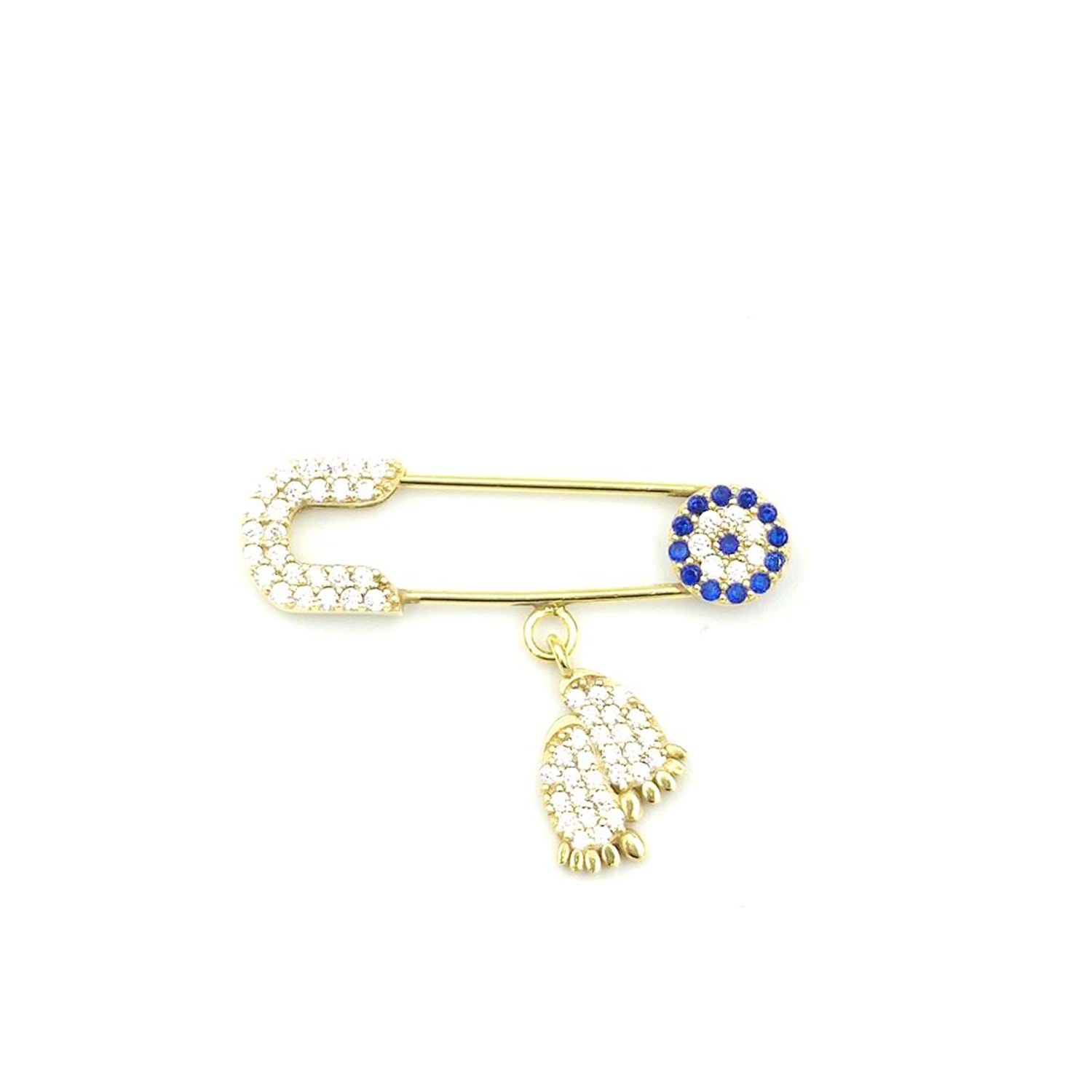 NAZAR BONCUKLU AYAKLI ÇENGEL GÜMÜŞ BEBEK İĞNESİ