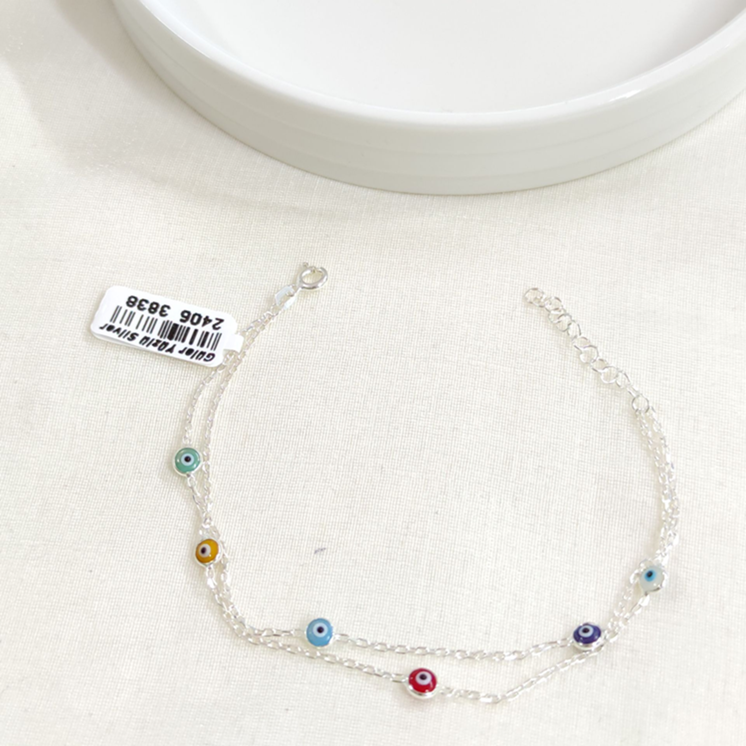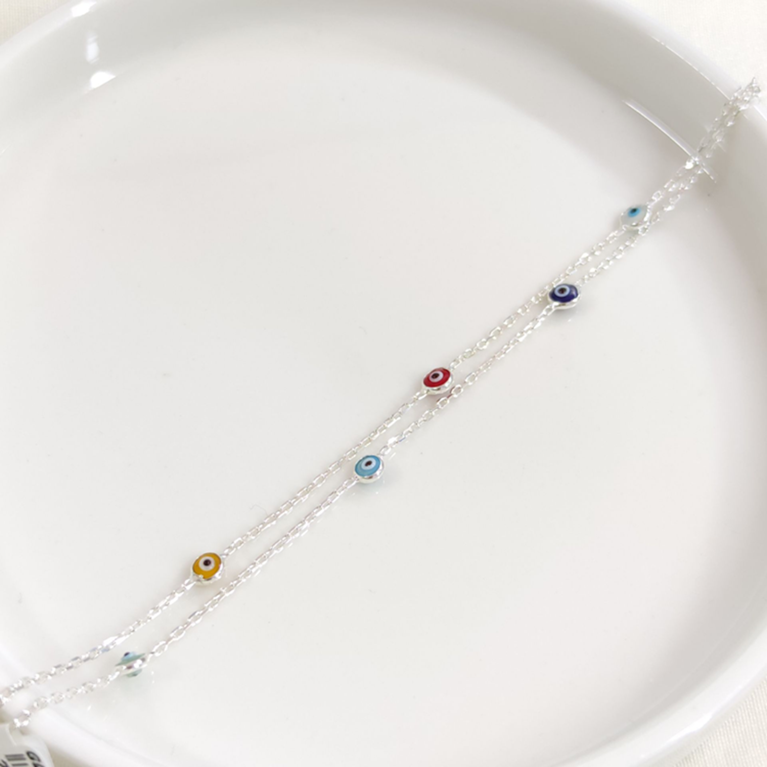 2 SIRA RENKLİ NAZAR BONCUKLU GÜMÜŞ BİLEKLİK