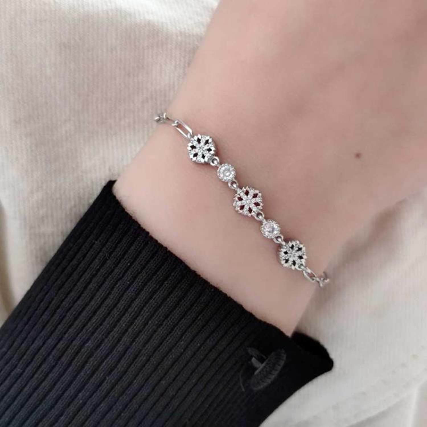 925 AYAR GÜMÜŞ ORT GRAM : 4,77 gr ATAÇ ZİNCİR DETAYLI ZİRKON TAŞLI KAR TANESİ GÜMÜŞ BİLEKLİK BİLEKLİK UZUNLUĞU : 17 CM + 3 CM EK UZATMA HALKASI MEVCUTTUR BİLEKLİK ATAÇ ZİNCİRLİ OLDUĞU İÇİN KANCASI İSTENİLEN YERE TAKILABİLİR, BİLEĞE GÖRE AYARLANABİLİR. KİMYASAL ÜRÜNLERLE TEMAS ETTİRMEYİNİZ SİPARİŞLERİNİZ İSTİSNALAR HARİÇ AYNI GÜN İÇİNDE KARGOYA TESLİM EDİLMEKTEDİR.