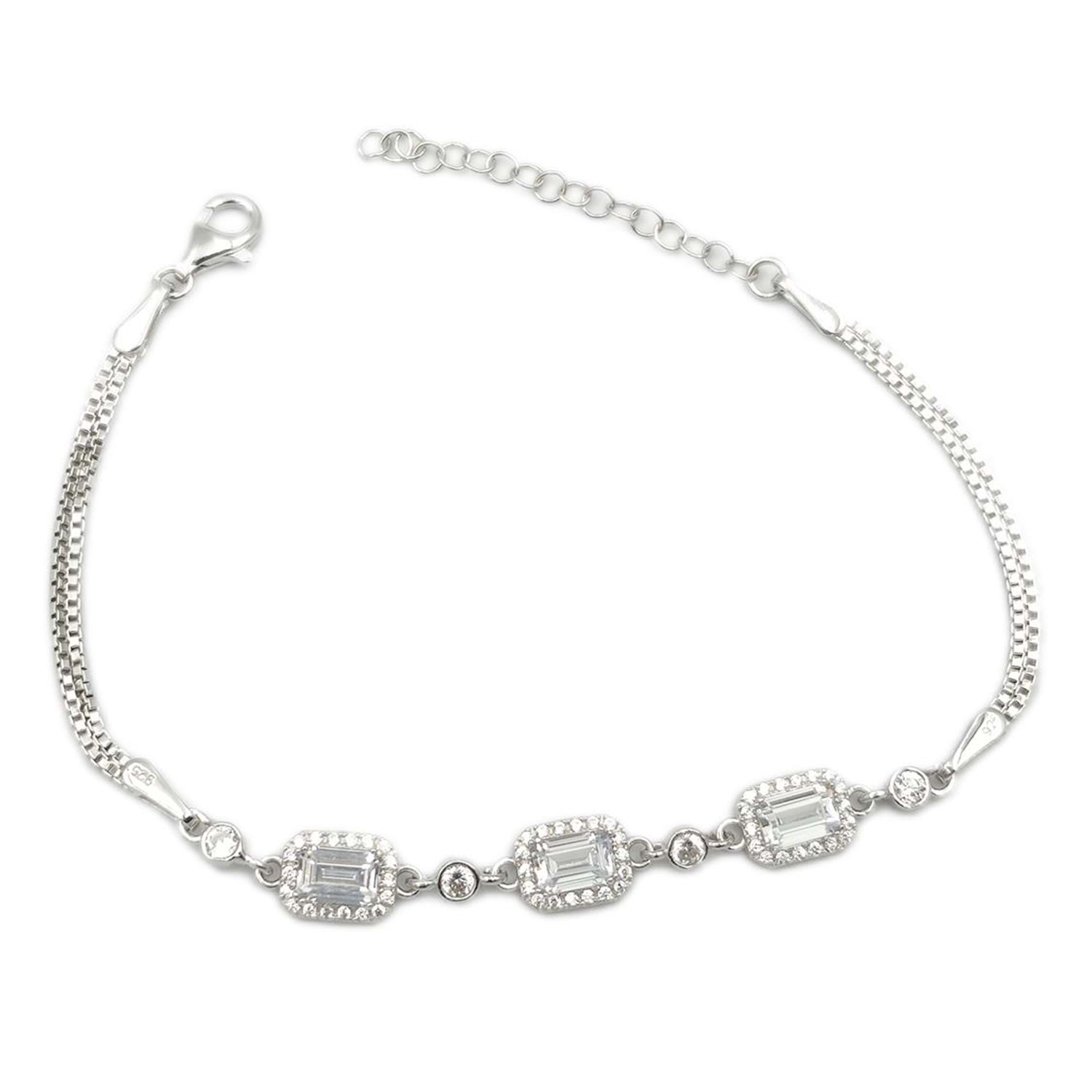 3 LÜ MİNİ BAGET KÜP GÜMÜŞ BİLEKLİK - RODYUM KAPLAMA