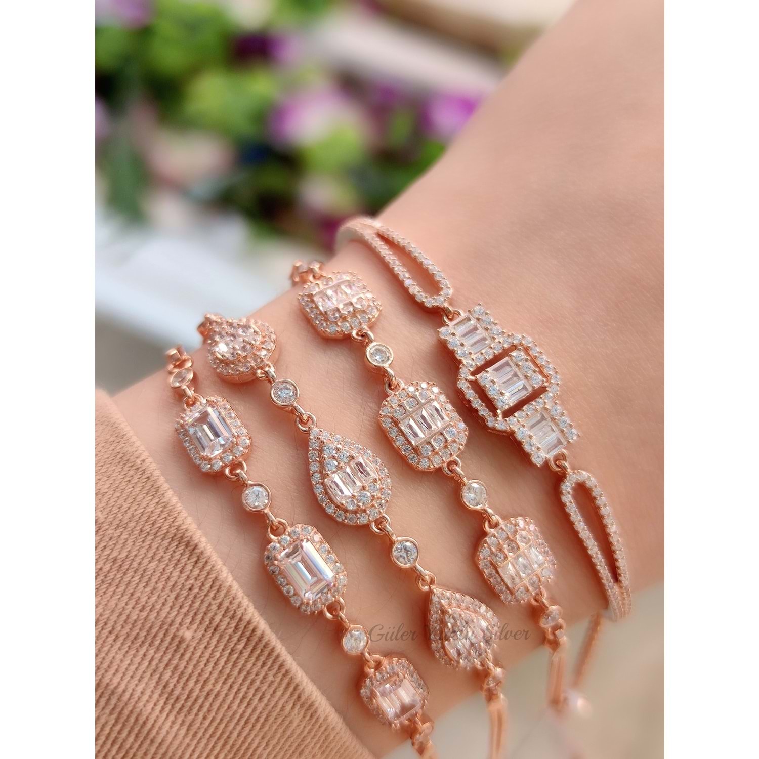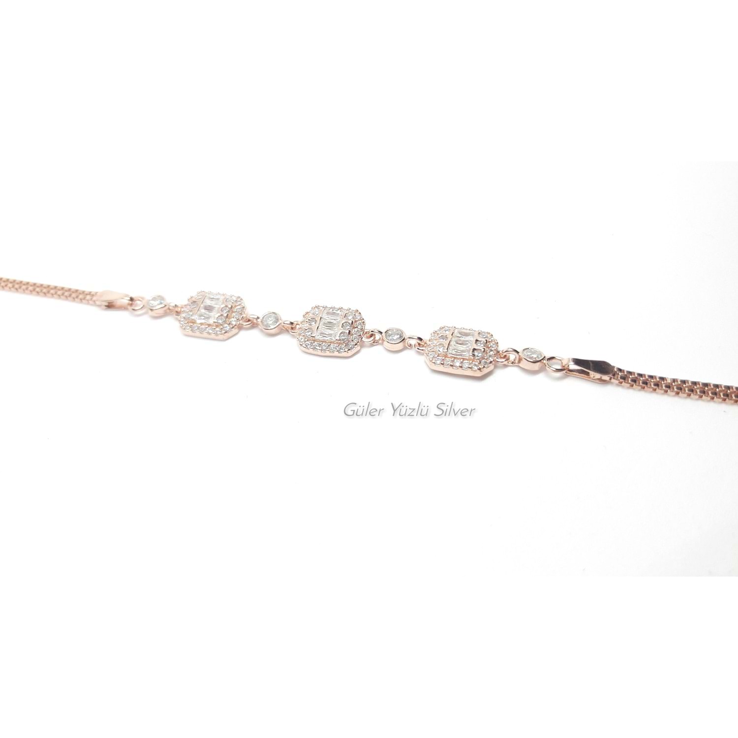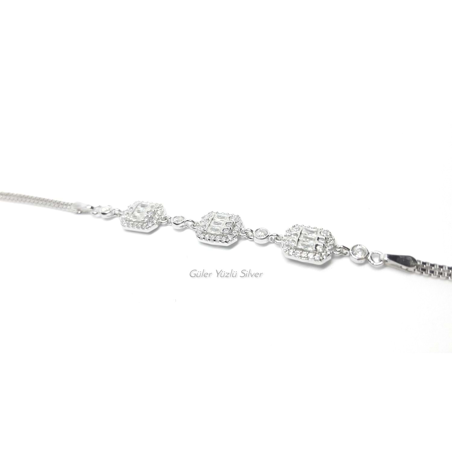 3 LÜ MİNİ PIRLANTA MONTÜR BAGET KÜP GÜMÜŞ BİLEKLİK