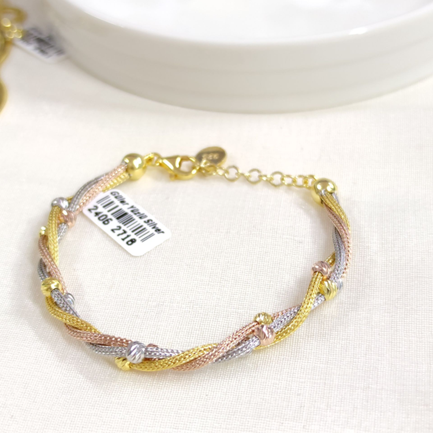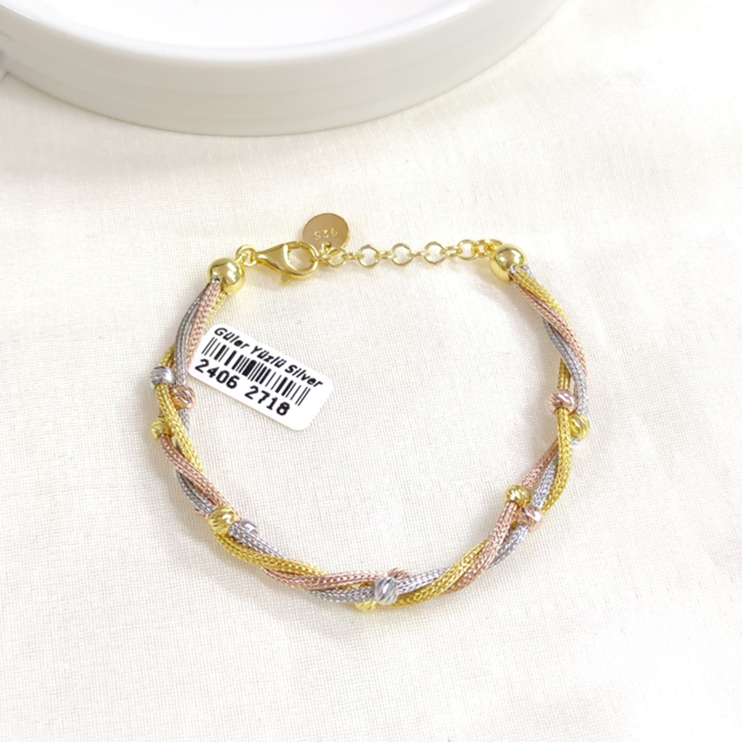 3 RENK 3 ZİNCİRLİ BURGULU DORİCA TOP GÜMÜŞ BİLEKLİK