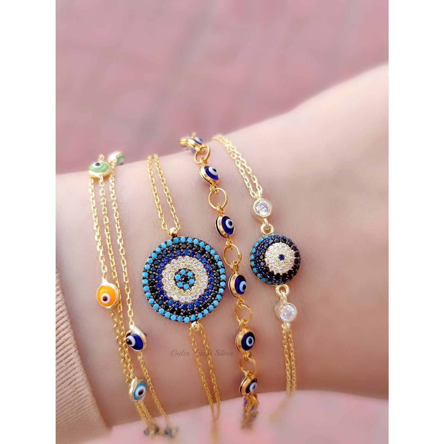 4 MM ALTIN KAPLAMA EL İŞİ CAM GÖZ GÜMÜŞ BİLEKLİK