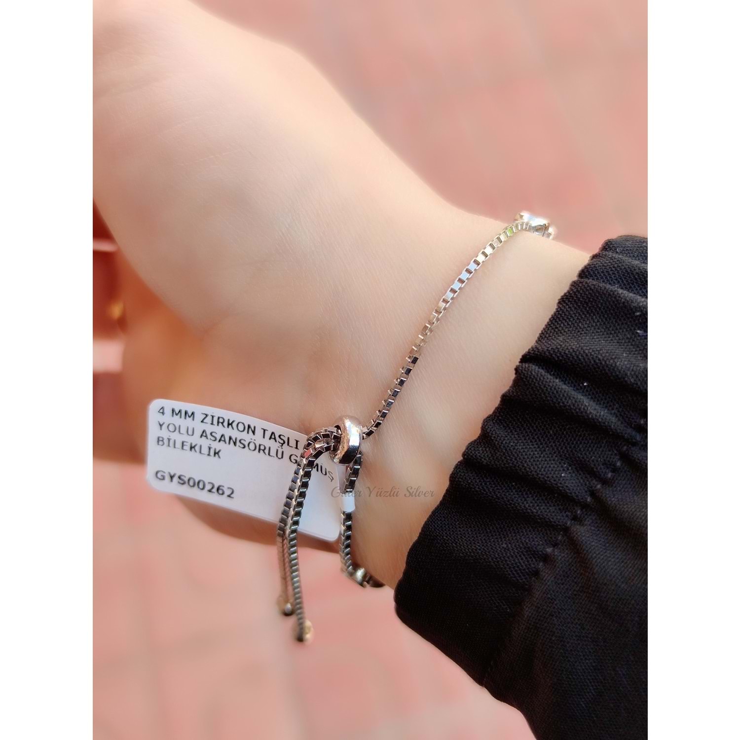4 MM ZİRKON TAŞLI SU YOLU ASANSÖRLÜ GÜMÜŞ BİLEKLİK