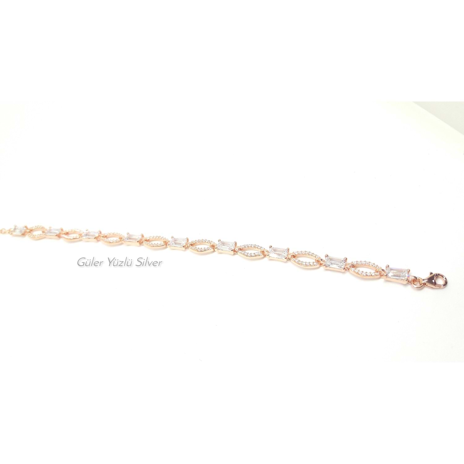 9 BAGET TAŞ GÜMÜŞ BİLEKLİK - ROSE ALTIN KAPLAMA