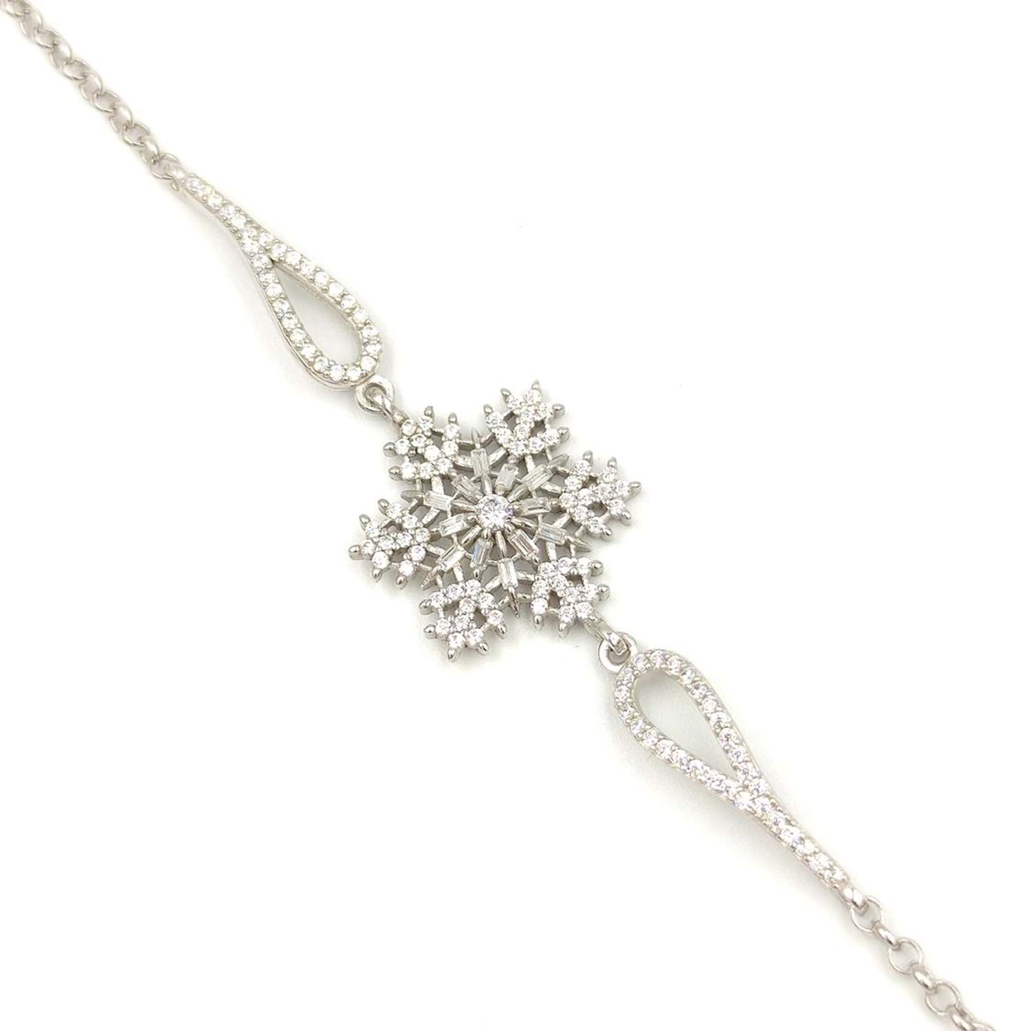 925 AYAR GÜMÜŞ UZUNLUK : 16,5 CM + 3 CM EK UZATMA HALKASI MEVCUTTUR. ORT GRAM : 5,17 CM KAR TANE BOYUTU : 2 CM ÇAPINDA ZİRKON TAŞ KULLANILMIŞTIR.