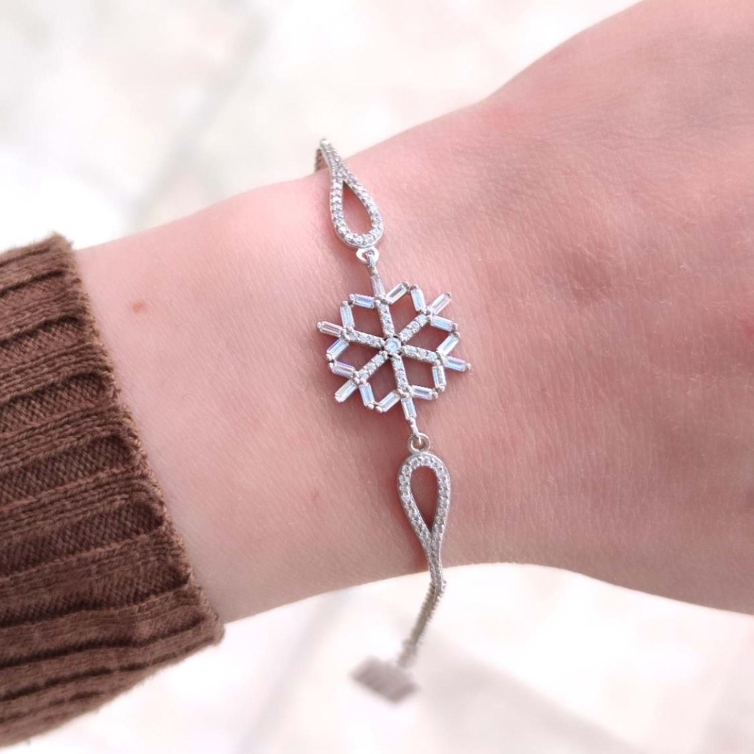 925 AYAR GÜMÜŞ UZUNLUK: 17 CM + 3 CM EK UZATMA HALKASI MEVCUTTUR. KAR TANE BOYUTU : 1,9 CM