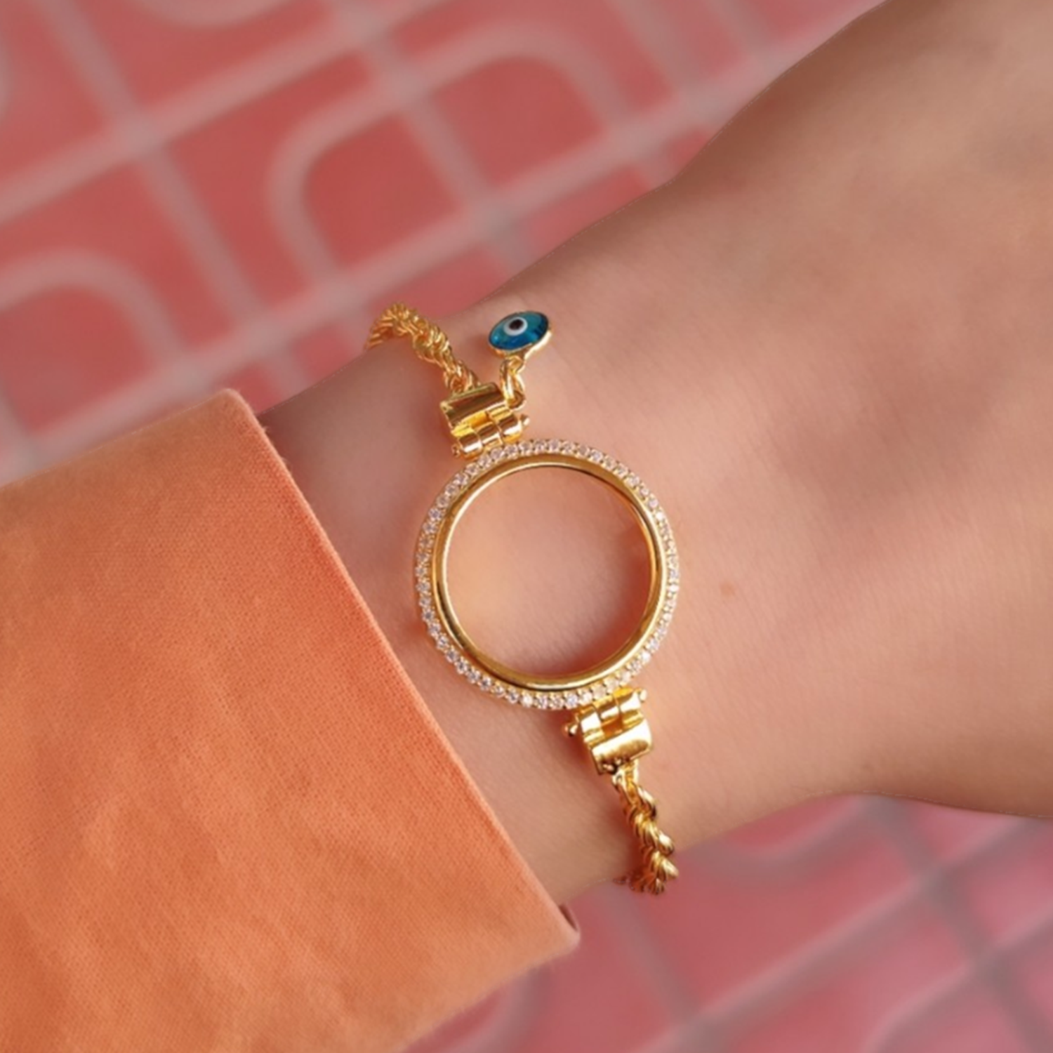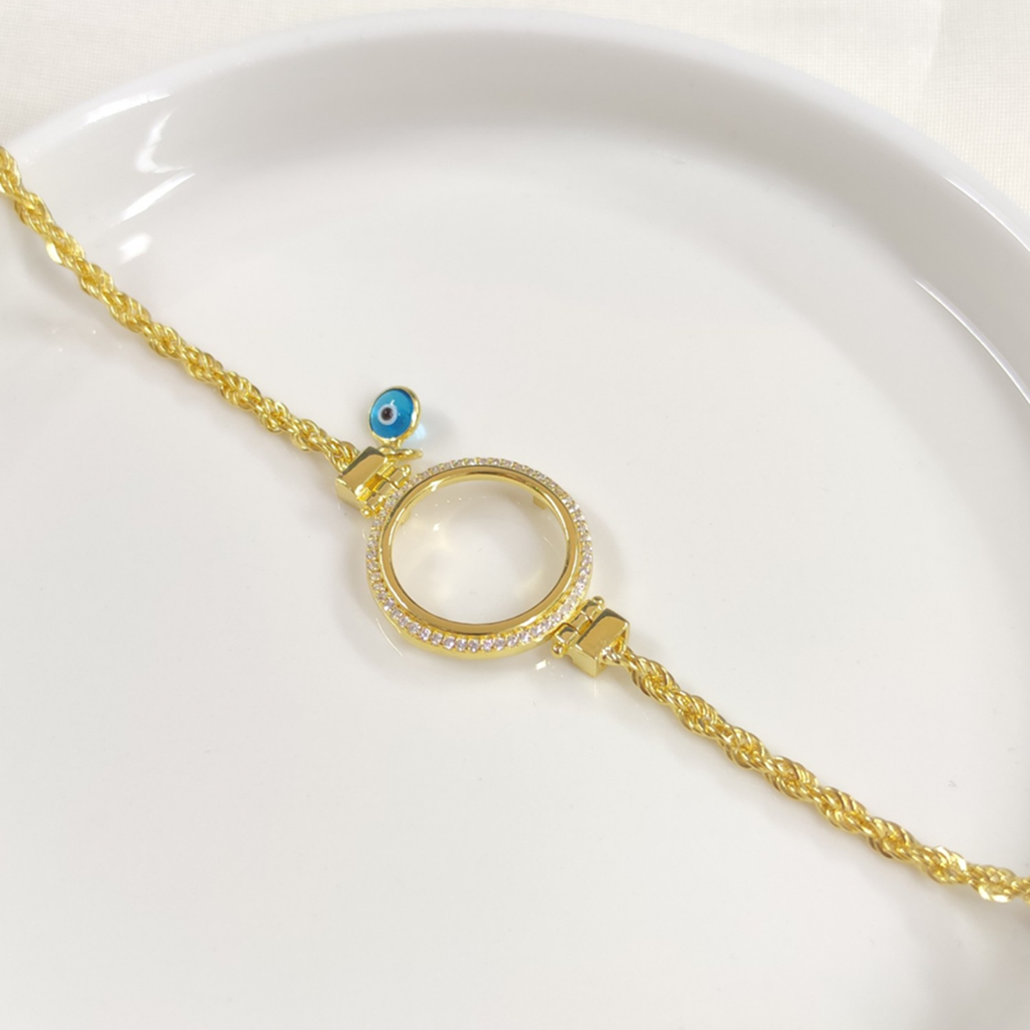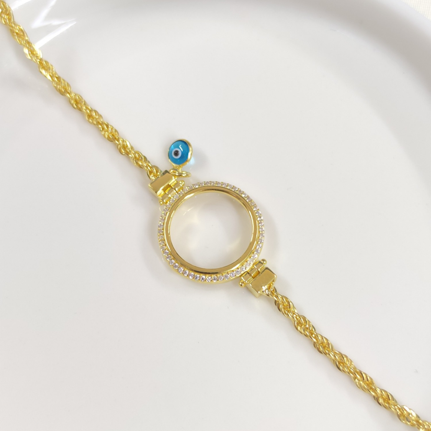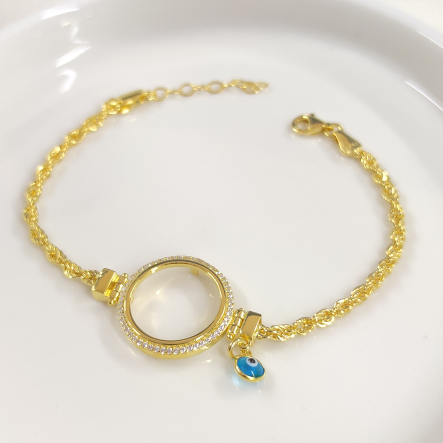 BONCUKLU BURGU ZİNCİRLİ ÇEYREK ALTIN KONULABİLEN GÜMÜŞ BİLEKLİK
