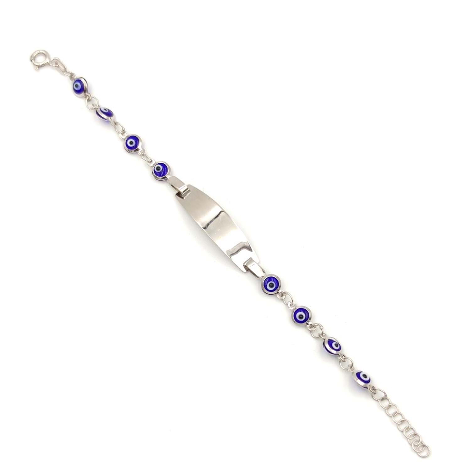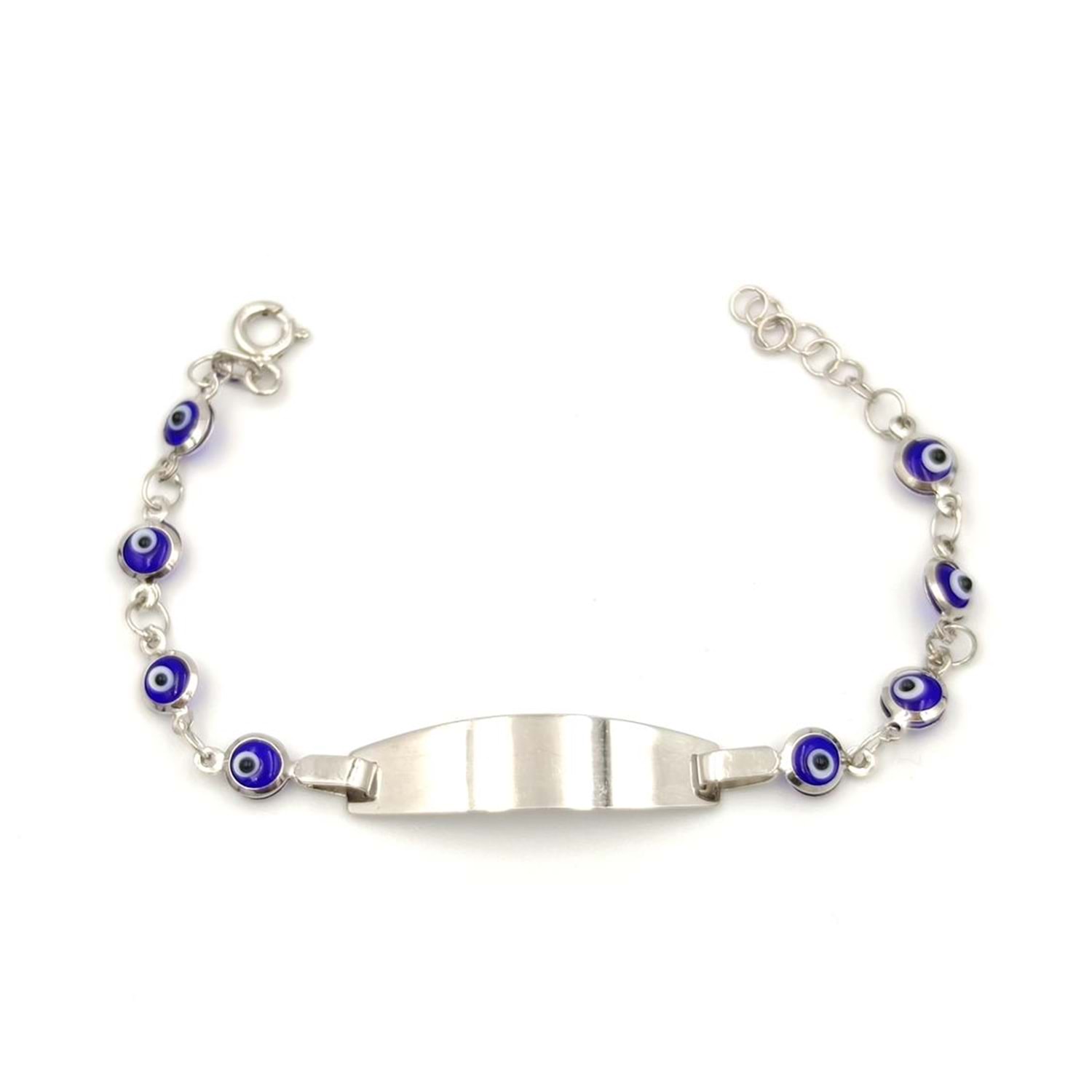 CAM NAZAR BONCUK İSİM YAZILABİLEN GÜMÜŞ ÇOCUK BİLEKLİK - LACİVERT